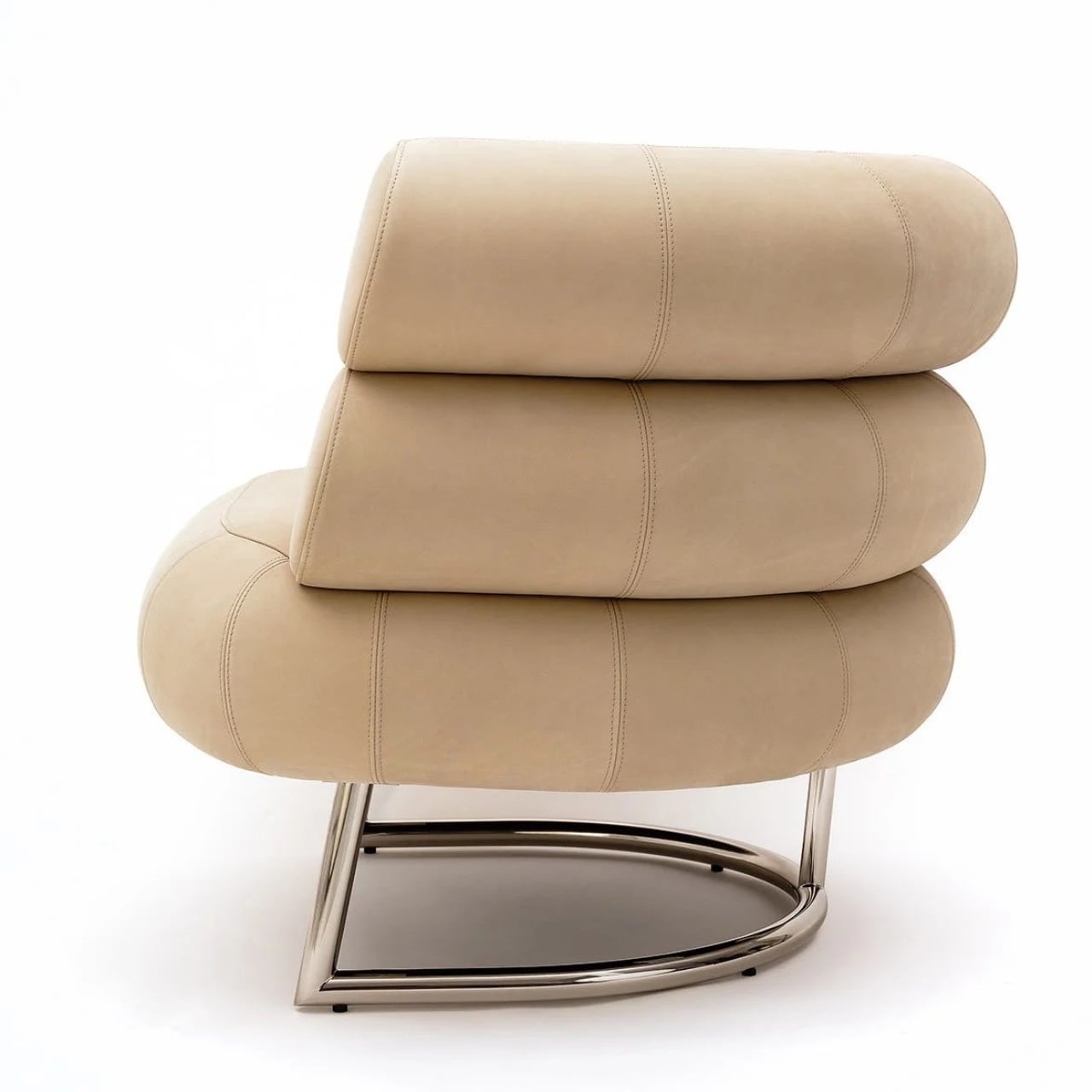 The Bibendum chair has always been a statement maker. With its plump, upholstered cushions stacked like inflated tubes and cradled by a sleek chromium-plated steel base, it looks like the Michelin Man decided to become furniture. Gray herself named it after Bibendum, the tire company’s puffy white mascot, because the resemblance was too perfect to ignore. But what started as a cheeky observation became one of the most recognizable silhouettes in design history.