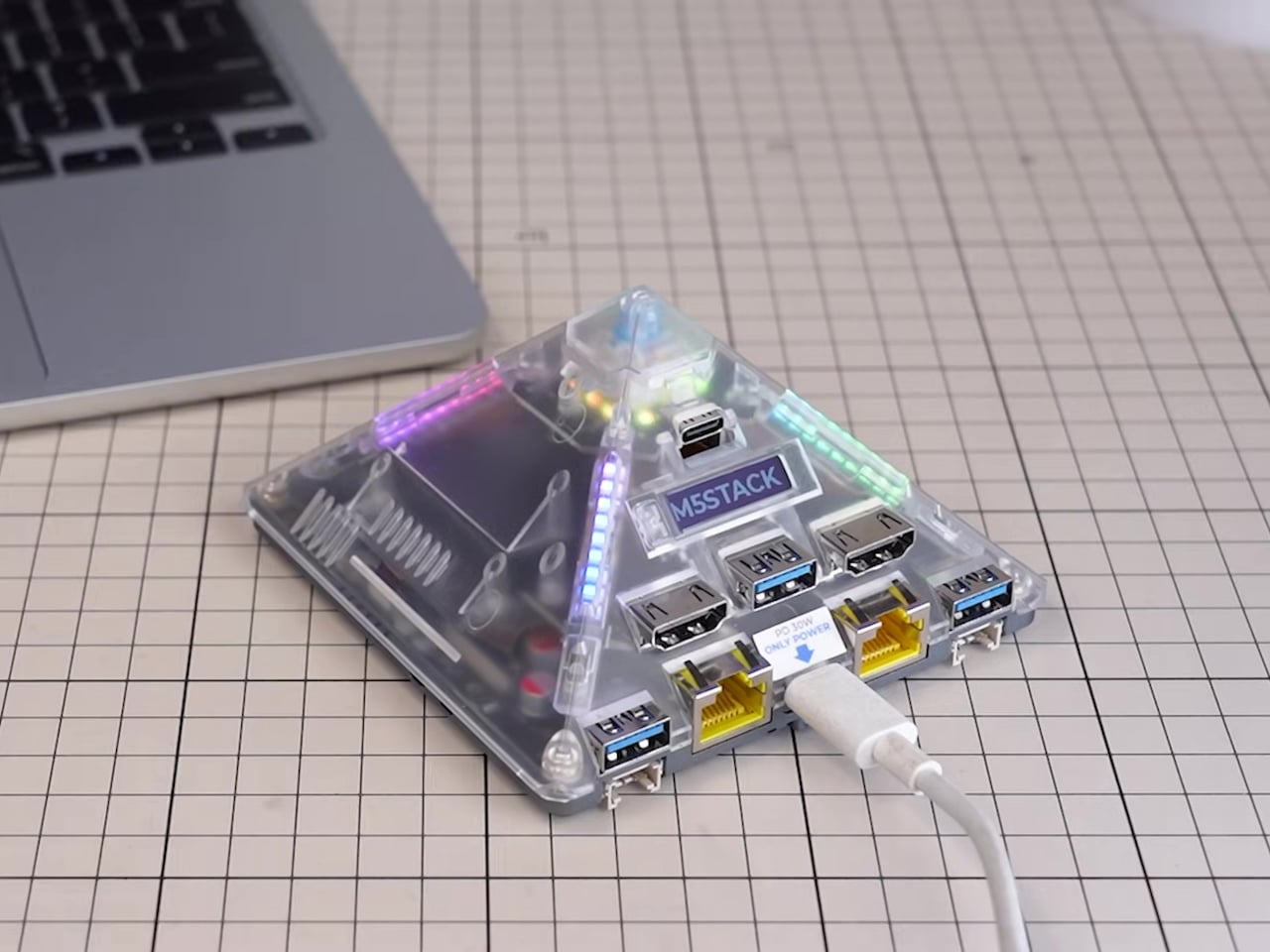 M5Stack’s AI Pyramid Computing Box leans into that idea, turning an edge-AI platform into a small pyramid that looks more like a sci-fi artifact than a router. There are two versions, a transparent 4 GB model that shows off its internals and RGB light bars, and a Pro 8 GB version in a solid gray shell that keeps the same silhouette but reads more like a piece of industrial hardware. Both share the pyramid form and the underlying platform.