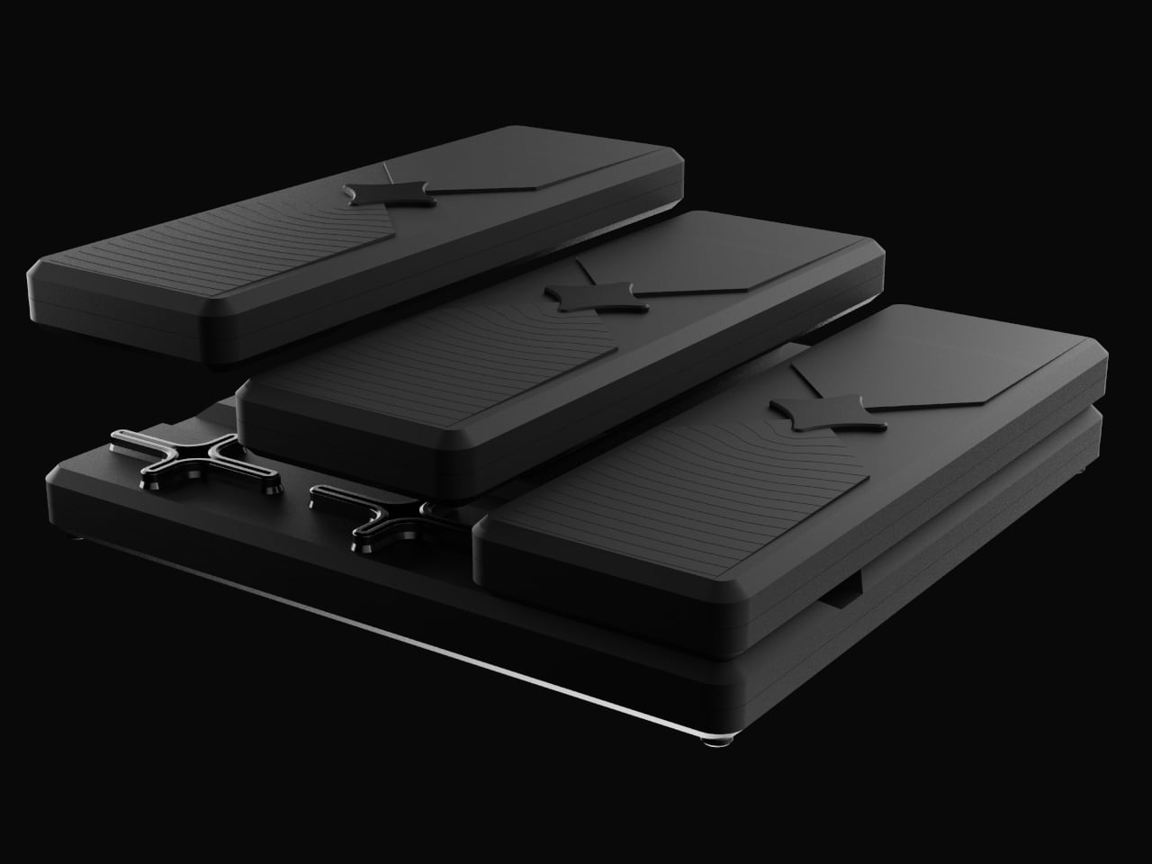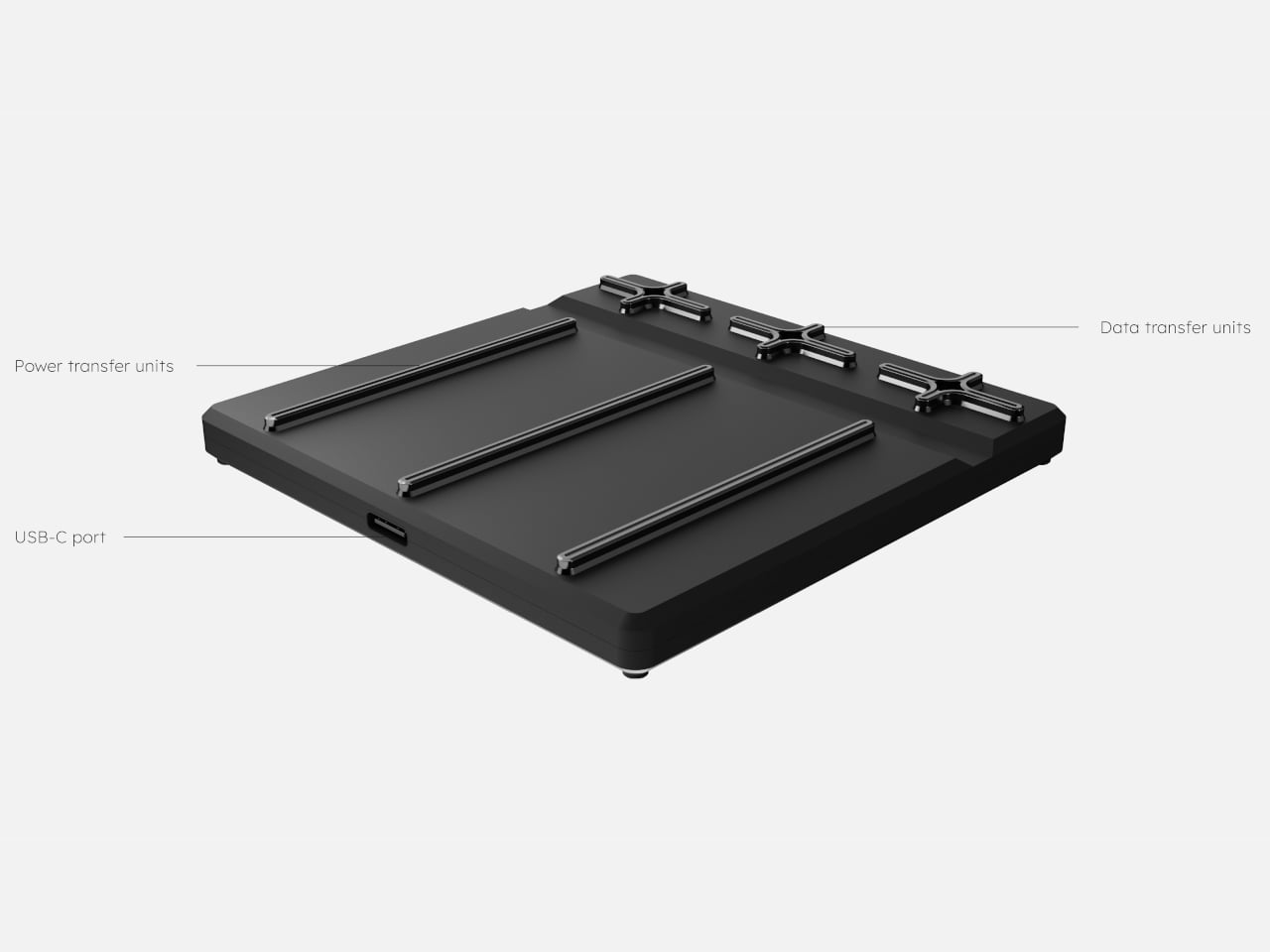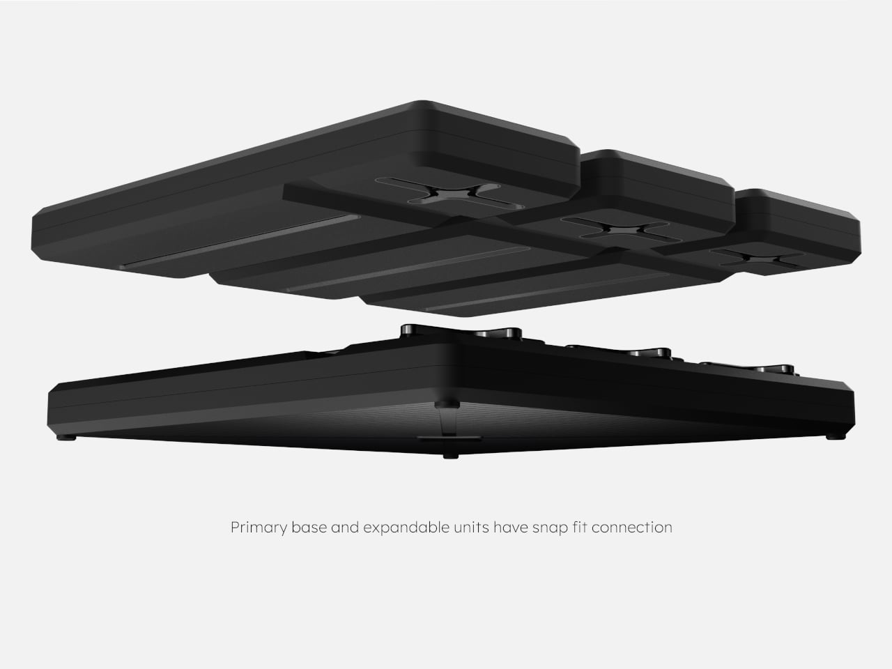 The base hides power and data rails under its surface, carrying electricity and PCIe or SATA signals to each module. The modules have matching contacts and snap-fit geometry, so stacking them is more like adding bricks to a foundation than daisy-chaining separate drives. Inside, each layer holds an M.2 SSD and dedicated power and data circuits, all wrapped in ABS injection-molded covers that protect the hardware.