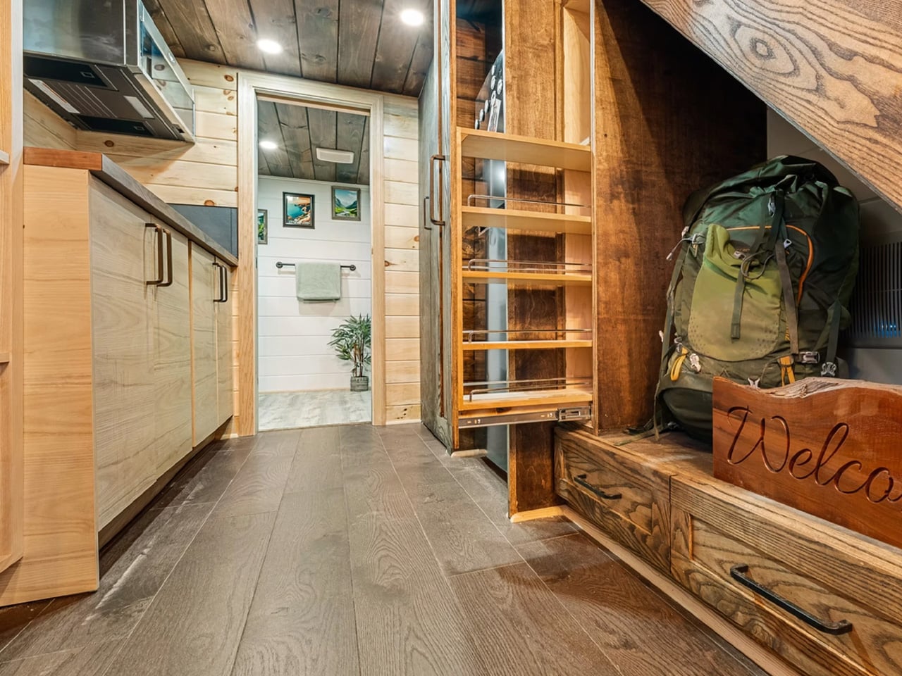 The Park sits on a triple-axle trailer measuring 30 feet by 8.5 feet, positioning it as a relatively compact option within the tiny home market. Despite its modest footprint, the home accommodates one to four people depending on the configuration chosen. The flexible layout adapts to different living situations, whether serving as a solo retreat or housing a small family. Backcountry Tiny Homes designed the interior with abundant storage solutions woven throughout the space, addressing the perpetual challenge of keeping compact living areas organized and functional without feeling cluttered or cramped.