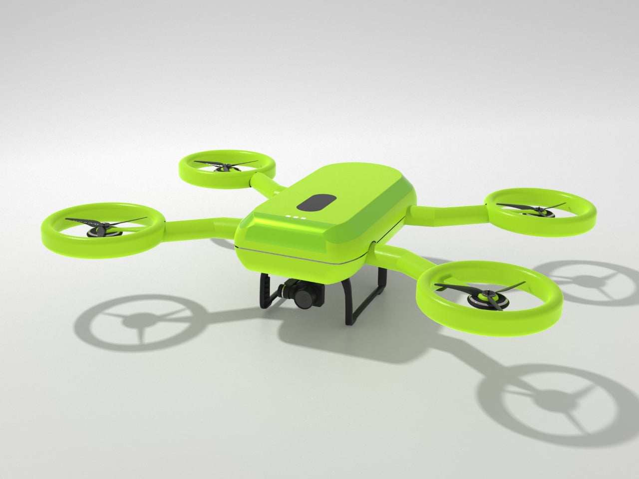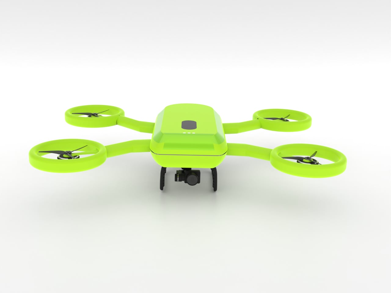 The frog metaphor shows up in the geometry. A central body sits low with four limbs ending in circular rings that fully enclose the propellers. Those rings add protection during low-height play, reducing injury risk and damage when the drone bumps into walls or trees. The rounded guards and soft transitions do the safety work without needing extra cages or add-on bumpers that make everything heavier.