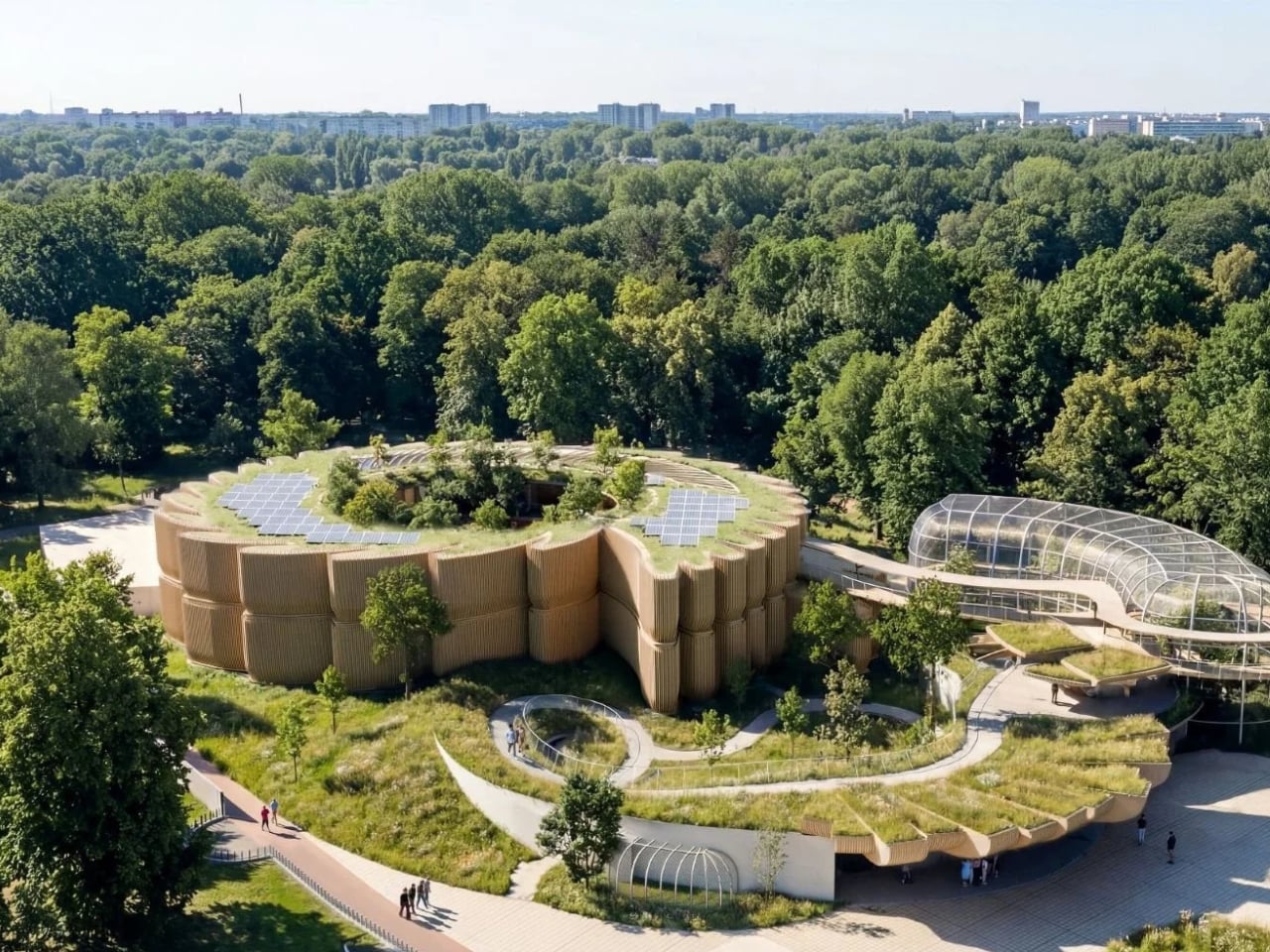 Looking at the renderings, what strikes you most is the facade. Those timber profiles create rhythm and texture while the green roofs blur the line between building and landscape. It’s biophilic design done right, not as decoration but as fundamental architectural strategy. The structure looks like it grew from the ground rather than being imposed on it.