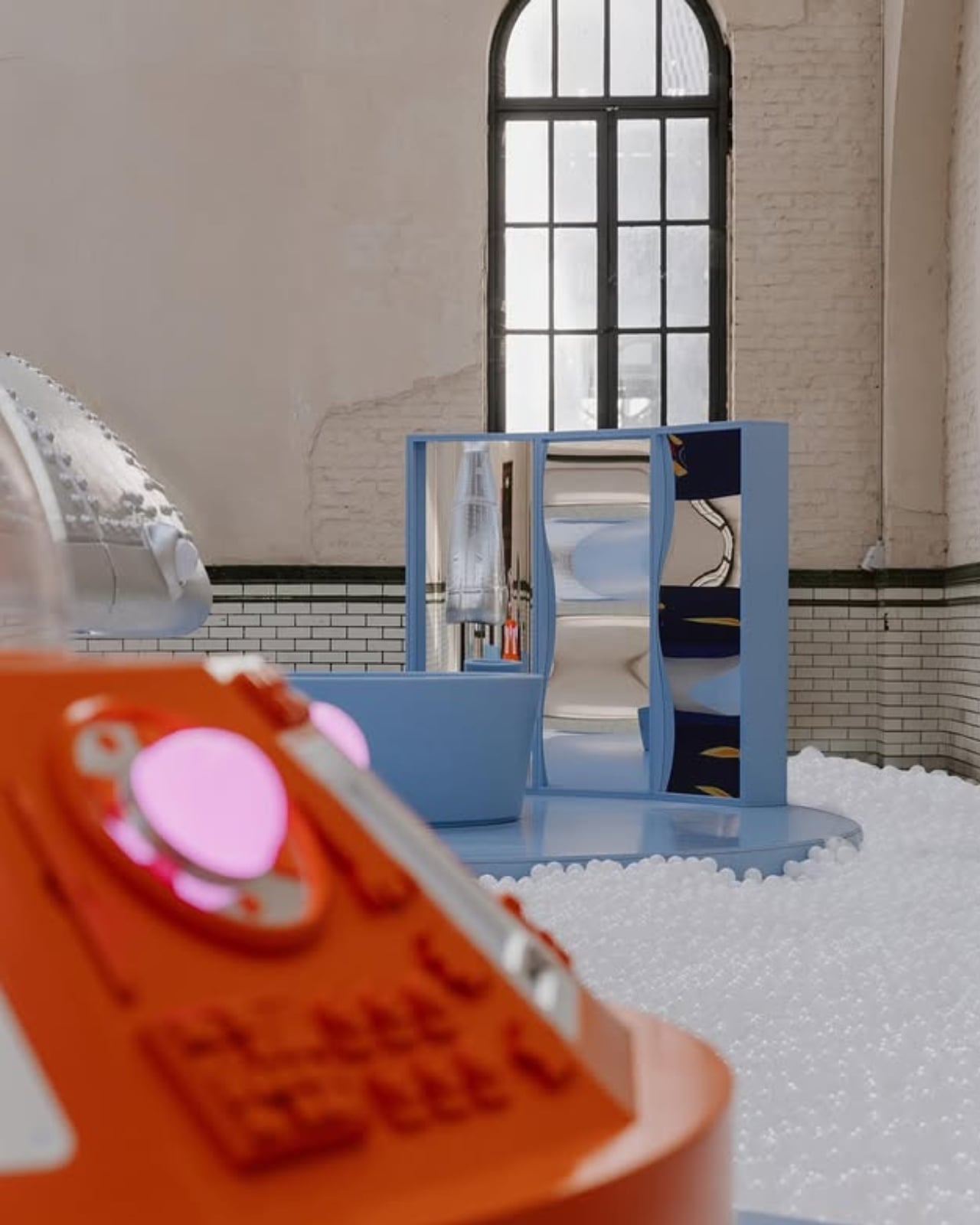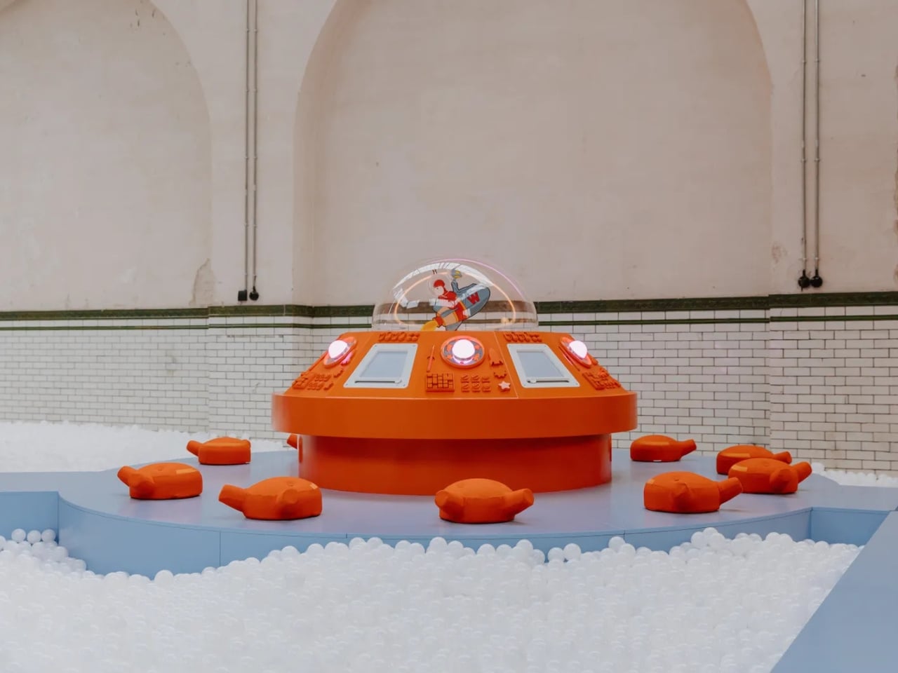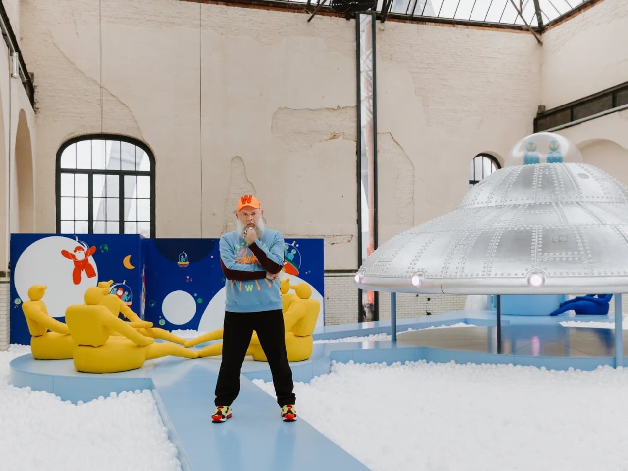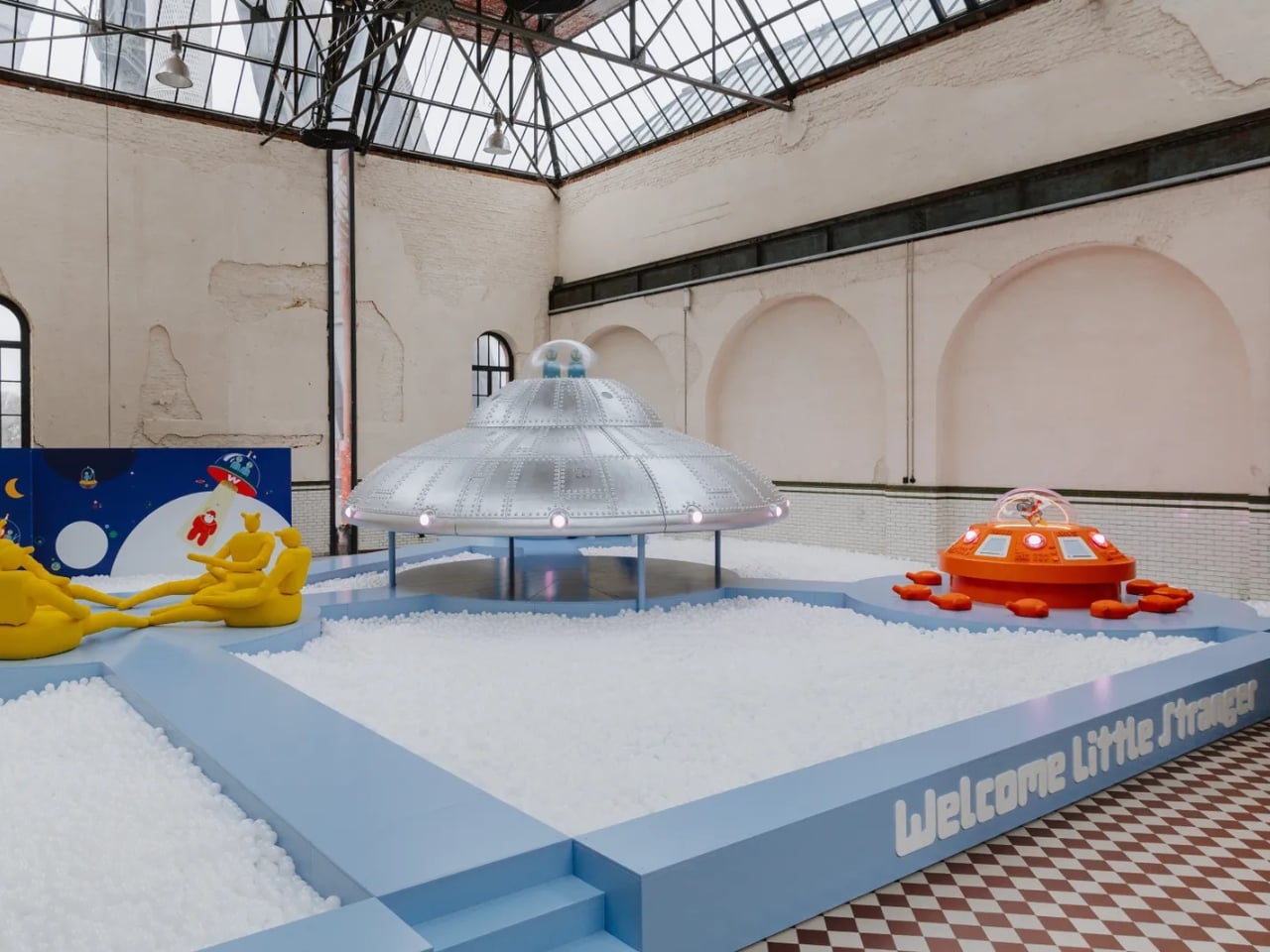 Welcome Little Stranger, which opened at C-mine in Genk, Belgium this month, marks Van Beirendonck’s first venture into interactive play design. The installation transforms an old industrial warehouse into an extraterrestrial playground where kids can meet a mysterious alien visitor through soft-play structures, vibrant colors, and immersive environments that feel like stepping onto another planet.