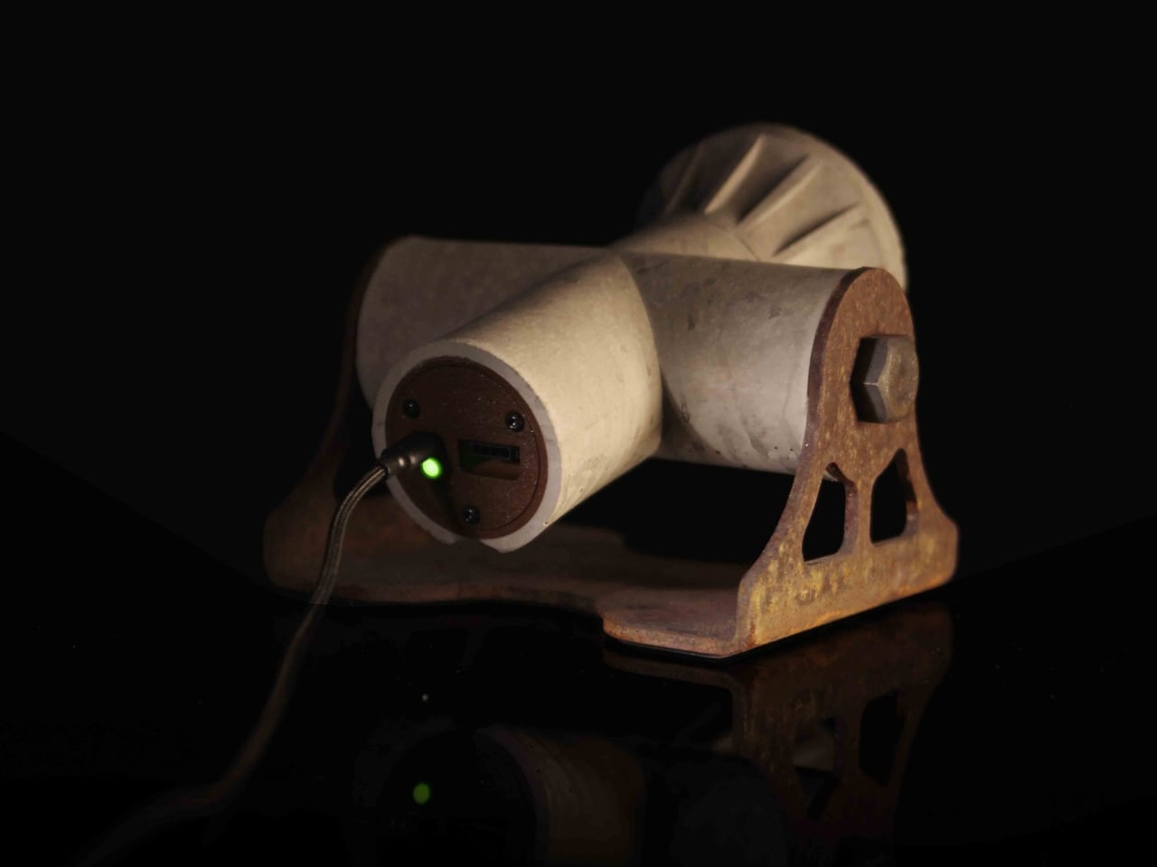 The Phantom reinterprets the visual language of cathode-ray tube displays from early computing. Not in a nostalgic way, but as a translation exercise. Van der Liet took the geometry, the mass, and the physical presence of those old CRT monitors and rebuilt them using cast concrete and raw steel. The result is something that feels both familiar and completely new, a dense, tactile object that sits on your desk with real weight and intention.