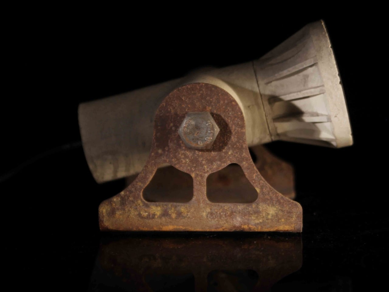 The form itself is immediately recognizable if you grew up around boxy computer monitors or chunky television sets. That characteristic curved screen, the cylindrical body, the industrial mounting stand. But instead of plastic housing and glass tubes, you get solid concrete and raw steel. The materials transform the reference from tech artifact into something closer to sculpture. This isn’t a replica or a throwback design. It’s a contemporary object that happens to speak the formal language of vintage electronics.