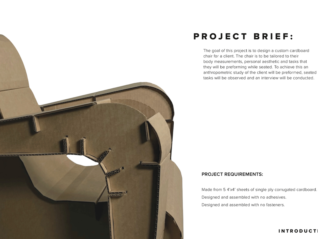 The Cardboard Chair Process Book is a design concept that creates custom cardboard chairs based on client interviews and anthropometric studies. Lissette Romero emphasizes that comfort depends on the chair’s intended use—a lounge chair for watching movies differs greatly from a desk chair for studying or gaming. Her process ensures that each chair is tailored to the sitter’s body, tasks, and personal aesthetic. By considering function, ergonomics, and context, Romero crafts designs that feel both practical and inviting, making comfort a personalized experience rather than a one-size-fits-all solution.
