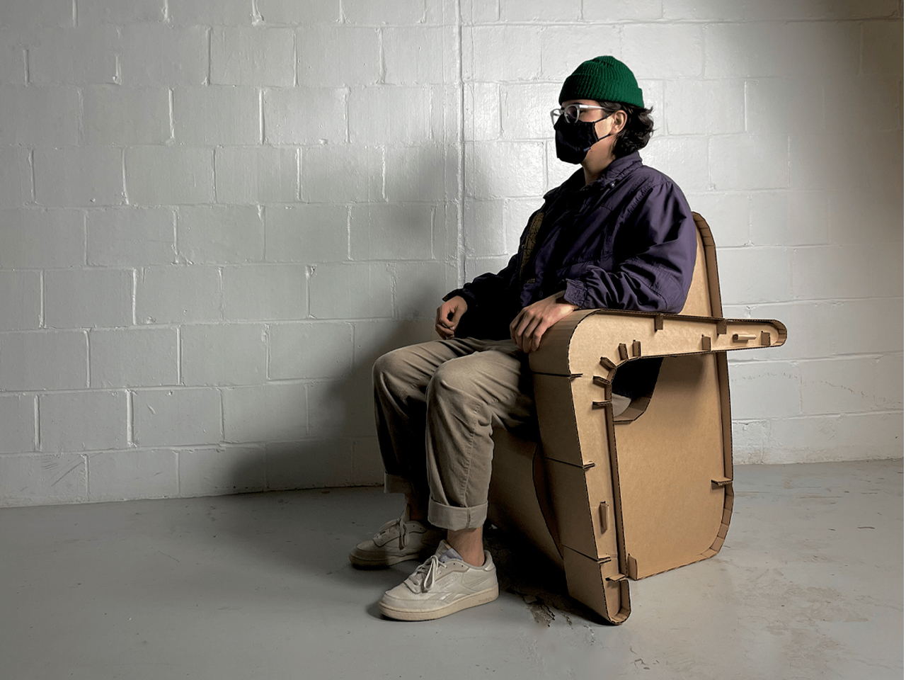 Each chair is constructed from five 4′ x 4’ sheets of single-ply corrugated cardboard and requires no adhesives, fasteners, or hardware. Romero begins by observing seated tasks and conducting detailed interviews, then develops three conceptual prototypes exploring different design languages. This method enables iterative refinement, resulting in chairs that are not only functional and structurally sound but also uniquely tailored to the client’s lifestyle and preferences.