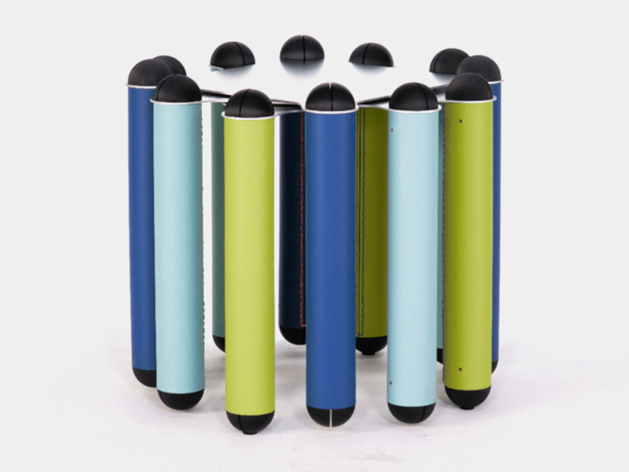 HIDDEN: PAPERS reimagines cardboard, typically discarded after packaging use, as a structural core. Thick tubes form the main frame, wrapped in removable linoleum sheets that are stitched rather than glued, so they can be replaced without damage. Recycled plastic nodes and a simple hex key allow the tubes to be assembled into shelves, side tables, or chairs finished with wood or metal surfaces. The result conceals its humble origins and proves cardboard can anchor refined, durable design.