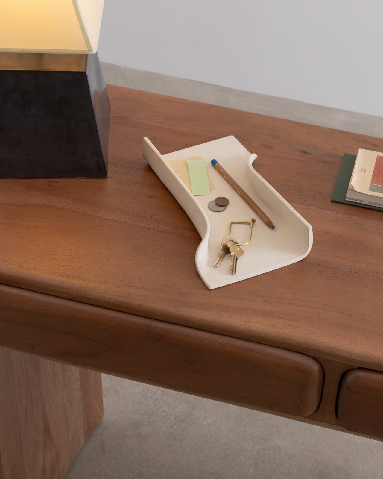The ARCHIVA Tray ($120) takes the opposite approach. Its clean edges and angular planes recall the structure of an architectural model, sharp, balanced, and quietly commanding. At 10.5 inches long, it’s the workhorse of the collection, perfect for corralling pens, notes, or the rotating cast of small objects that always end up on a desk. It looks like something you’d find in a very well-edited design studio, which is exactly the point.