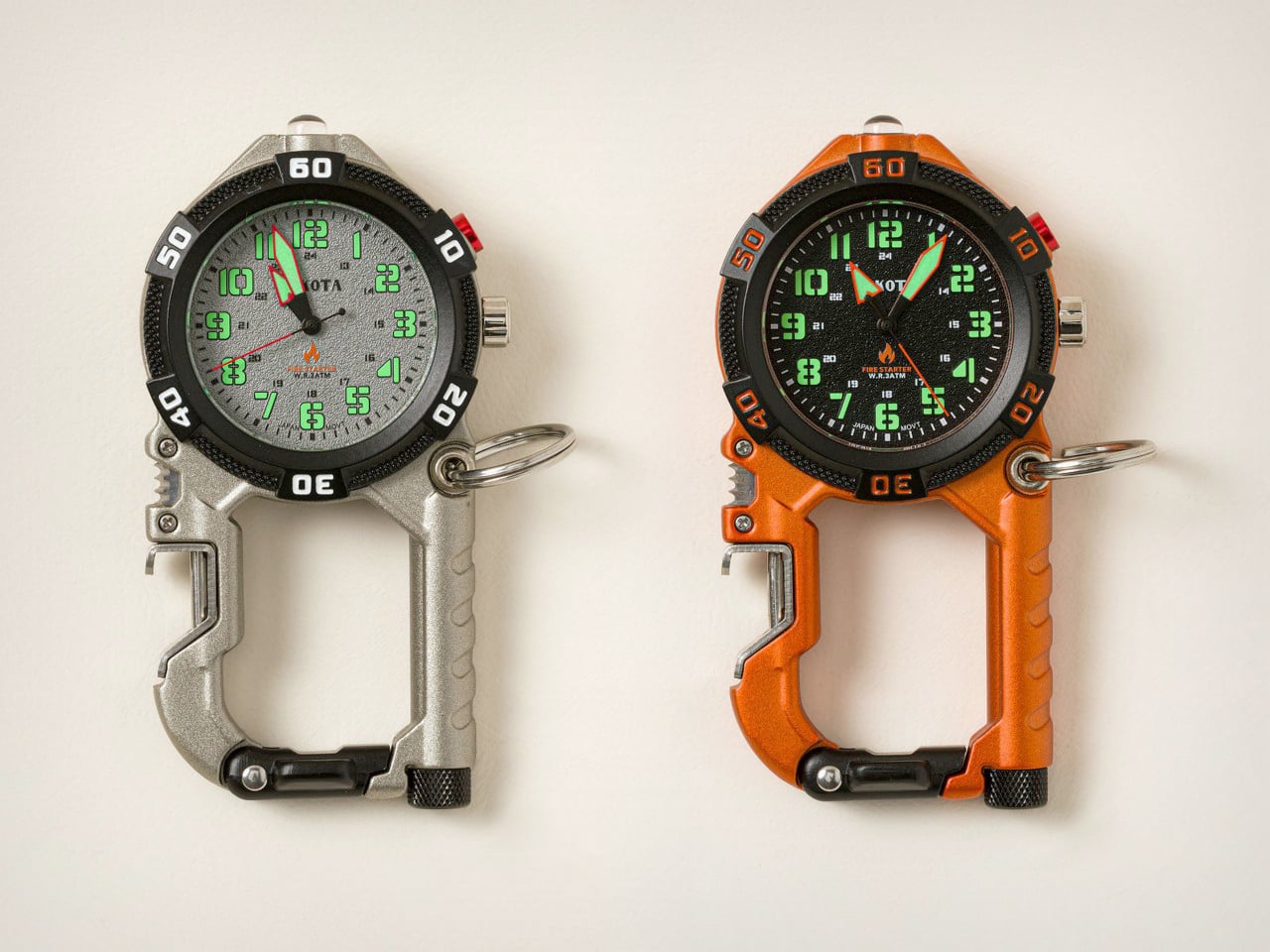 The Flint Clip Carabiner comes in 3 distinct colors – a silver, with a light-colored watch-face to match, a black, with a dark watch-face, and perhaps my favorite, an eye-catching orange that also sports the same dark-colored watch face. All three watches have a Japanese Quartz movement on the inside, which isn’t anything to write home about if you’re a watch aficionado, but the movement, like every other part of the watch, screams reliability, so you know you’ve got an EDC you can trust, whether it’s to tell you the time, or be your ultimate outdoor adventure sidekick.