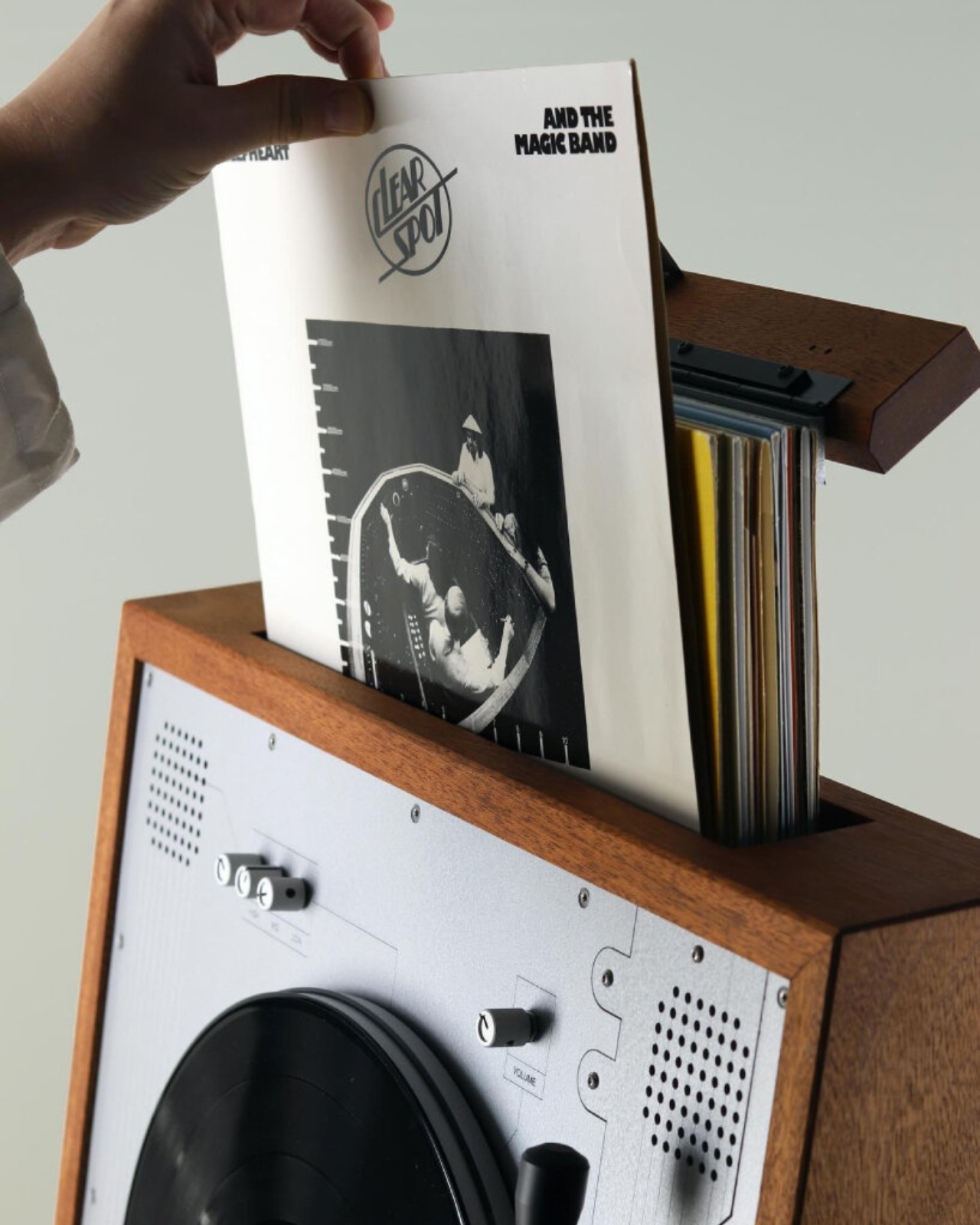 Yes, vertically. Your records, standing upright, spinning in a way that feels both physically unlikely and somehow completely right. It’s the kind of design move that makes you stop scrolling, tilt your head, and go, “Wait, how?”