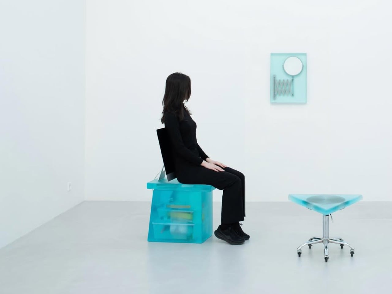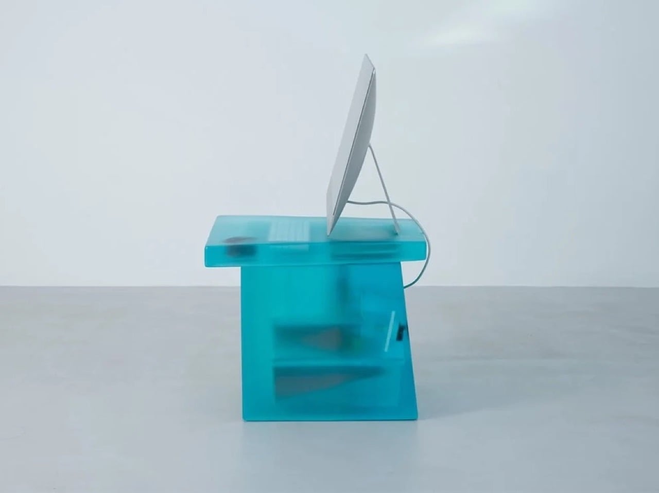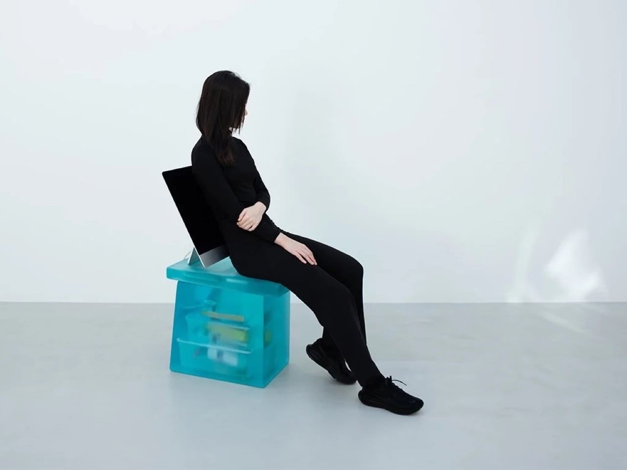 Dip1, a chair by Korean designer Lim Wootek, takes that idea literally. The backrest is a real iMac monitor, its slim aluminum frame pressed against your spine as you settle in. It sounds wrong. It feels wrong. And somehow, that wrongness is exactly what makes it so addictive to look at. The keyboard, mouse, and storage bins are encased beneath the seat in a glowing block of cyan resin, visible through the haze like memories you recognize but can no longer touch. I guarantee you, you’ll grimace at the thought of sitting on the chair, as you lean back against what might be the most expensive and engineered backrest known to mankind.