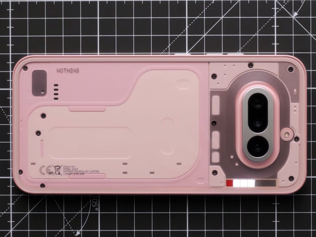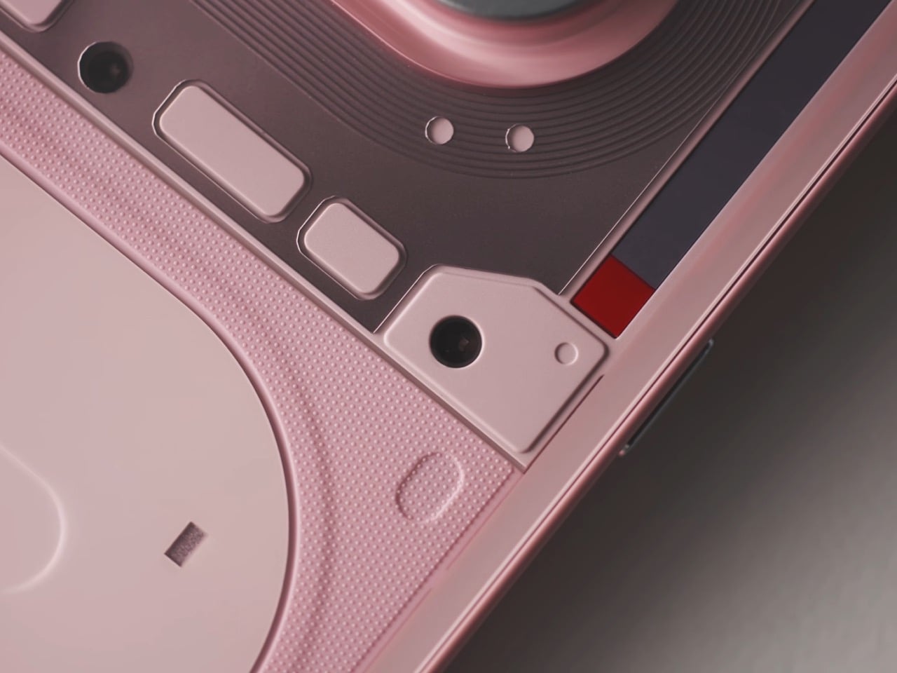 The pink is the first thing people will talk about, and most of them will get it slightly wrong. The phone reads pink, but the back panel is technically white. The color comes from tint layered inside the transparency, sitting between the glass and the resin underneath, which means the light has to travel through it before it bounces back to your eye. That gives it a depth and a luminosity that solid paint physically cannot produce. Nothing’s designers described it as starting with the resin being nearly identical to white, then adding a small amount of tint, then letting the tinted glass layer do the heavy lifting. The result shifts depending on the light you’re standing in, giving you a phone that changes ever so slightly in different lighting scenarios. It’s clever, considering Nothing’s done this in the past by playing with depth, relying on textures and components casting unique shadows based on the light source. Now, the company’s adding color to that formula.