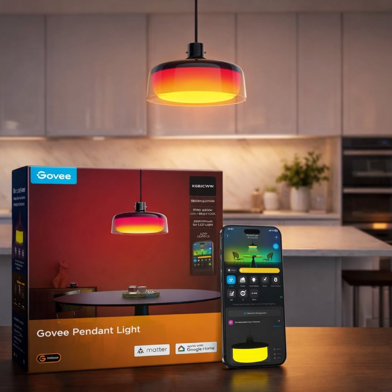 Temu sunset lamp, we had fun. The warm orange glow, the perfect circle on the wall, the way it made any room look like a soft launch music video. But the era of the single-trick ambient light is quietly wrapping up, and Govee’s new Pendant Light is part of what’s replacing it.