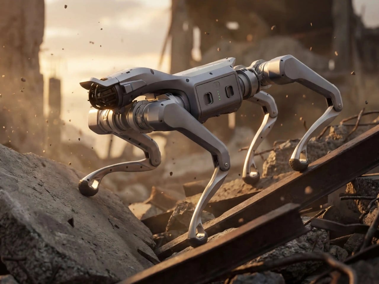 Speed-wise, it hits over 5 meters per second, roughly 11 miles per hour, which is faster than most people jog. It can climb stairs up to 25 centimeters high, tackle slopes at 40 degrees, and mount vertical platforms as high as 50 centimeters. The torque output sits at approximately 90 N·m with a torque-to-weight ratio of about 5 N·m/kg, driven by low-inertia inner rotor motors paired with industrial-grade crossed roller bearings. The engineering here is dense and deliberate. This isn’t a toy built to look capable; it’s a machine built to actually be capable.