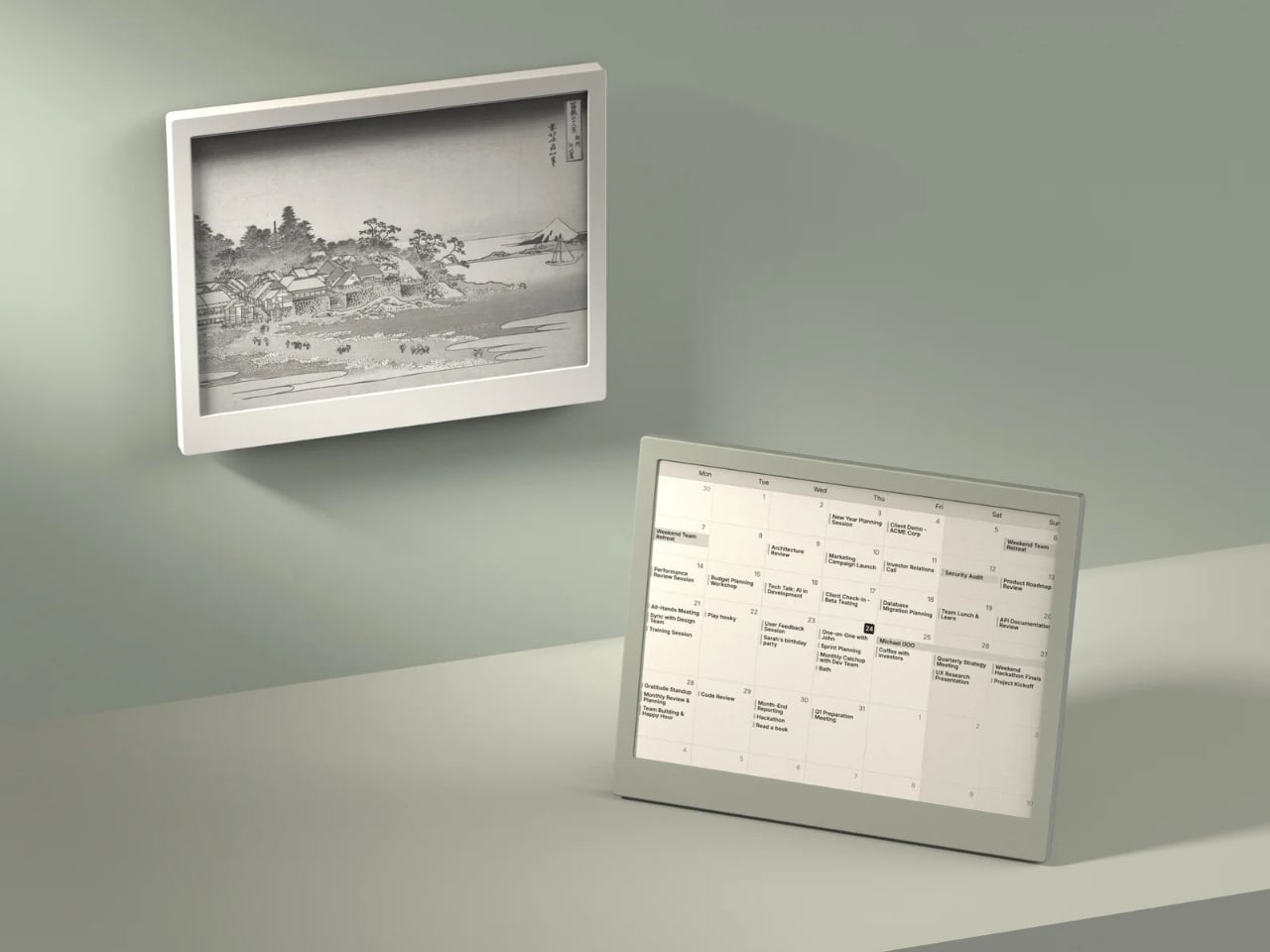 The display itself is gorgeous in the understated way that only e-ink can be. At 1872 x 1404 resolution with 16 shades of gray, it renders calendars, weather dashboards, news headlines, and artwork with a crispness that feels more like a printed page than a screen. Partial refreshes happen in under 200 milliseconds, which is fast enough that the display doesn’t feel sluggish when cycling through your content. It’s the kind of screen you can stare at for hours without your eyes complaining, which is something no LCD or OLED can honestly claim.