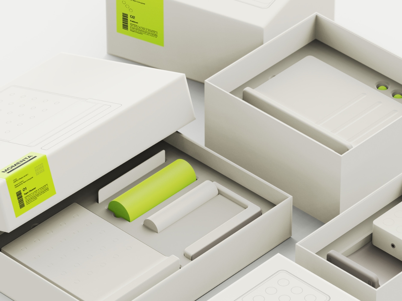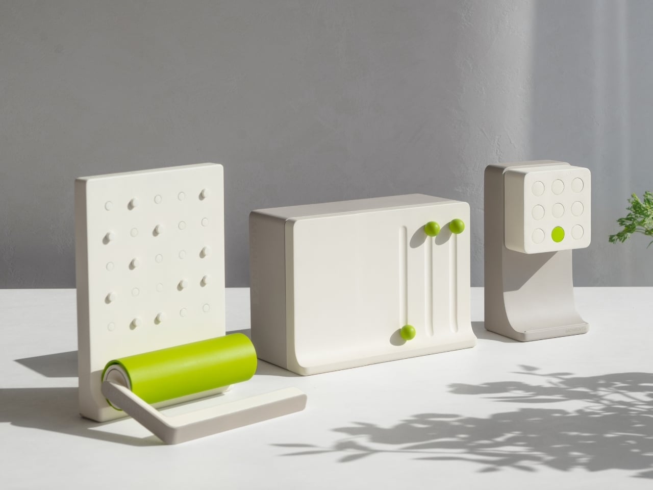 What makes Momenta genuinely interesting beyond its novelty is the layer of restraint in its design. Nothing here is loud or demanding. There’s no beeping, no blinking display, no app required. The products are minimal and clean, rendered in white with sharp pops of green for the triggers. They look like they belong in a thoughtfully curated home. The triggers do their work subtly, appealing to your instincts rather than interrupting your day.