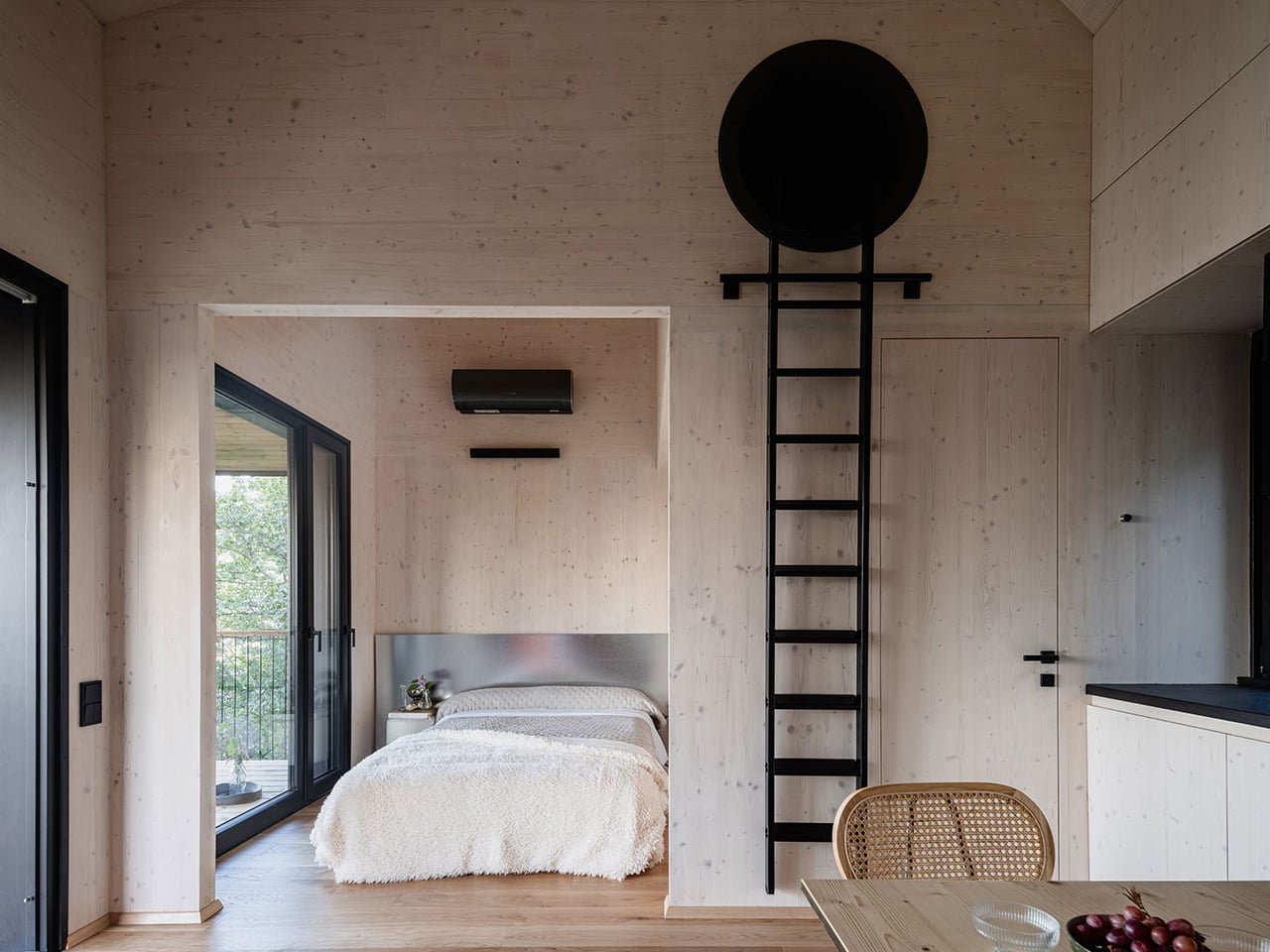 The tree itself helps regulate the microclimate through its natural transpiration. Thoughtful placement of windows and openings captures changing light and shadow, softening the interior and creating a calm, diffused atmosphere. By working with the tree and its environment, the treehouse achieves energy efficiency and comfort, showing how design can harmonize with nature rather than fight it.