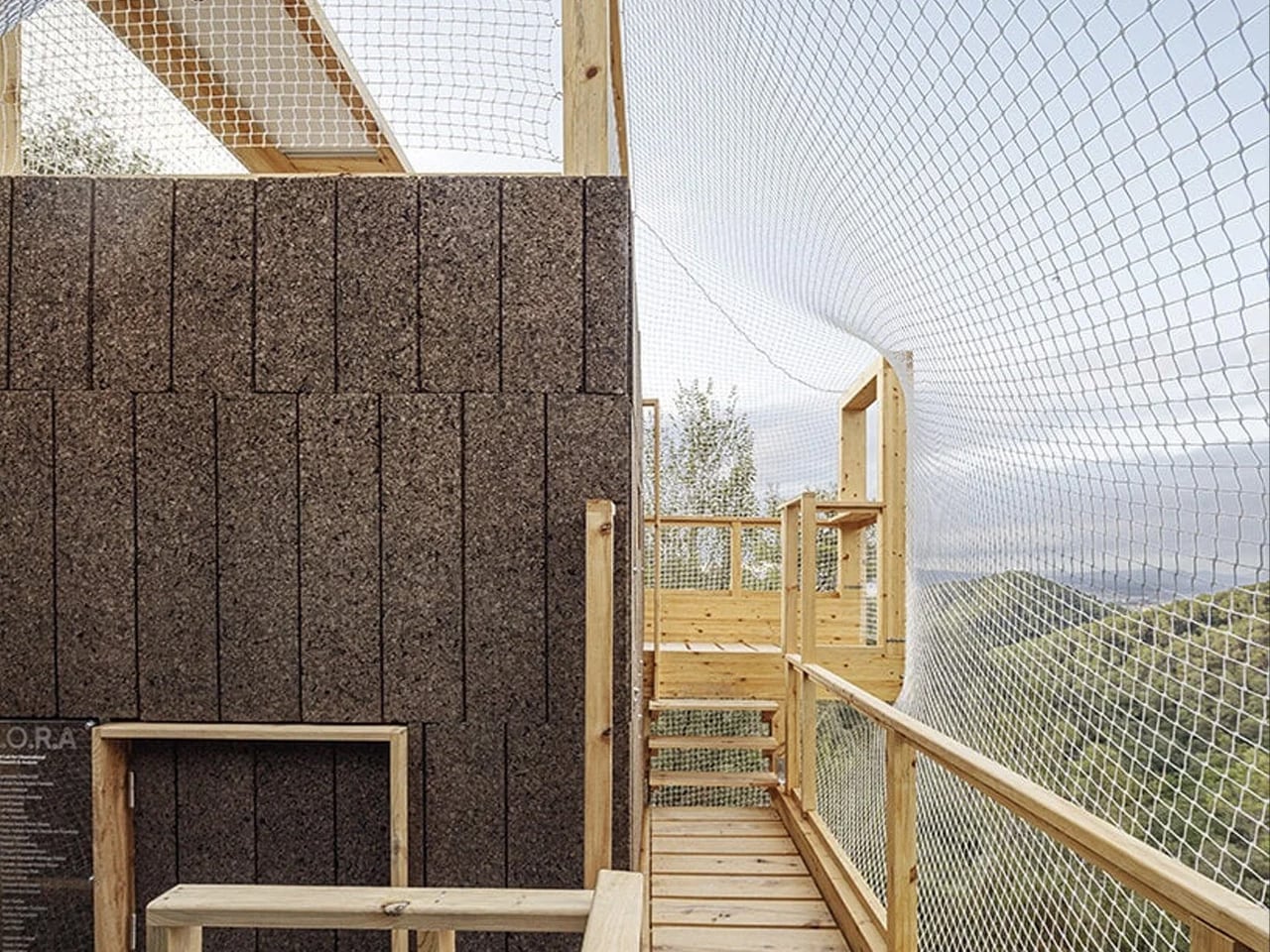 What makes FLORA especially notable is its material strategy. The entire mass-timber structure was built using invasive pine trees sourced from within the park through carefully managed forestry practices. These trees were processed into cross-laminated timber panels, laminated beams, and solid wood components, following a zero-kilometer approach to construction. Inside, the observatory includes work areas, projection space, and bird-monitoring features, turning the building into a functional research prototype that demonstrates how sustainable materials and sensitive design can support long-term ecological study.