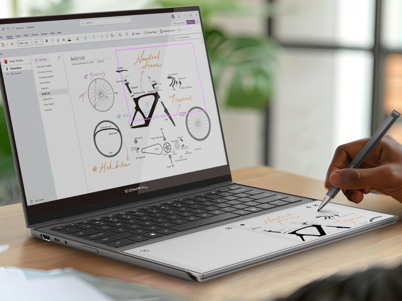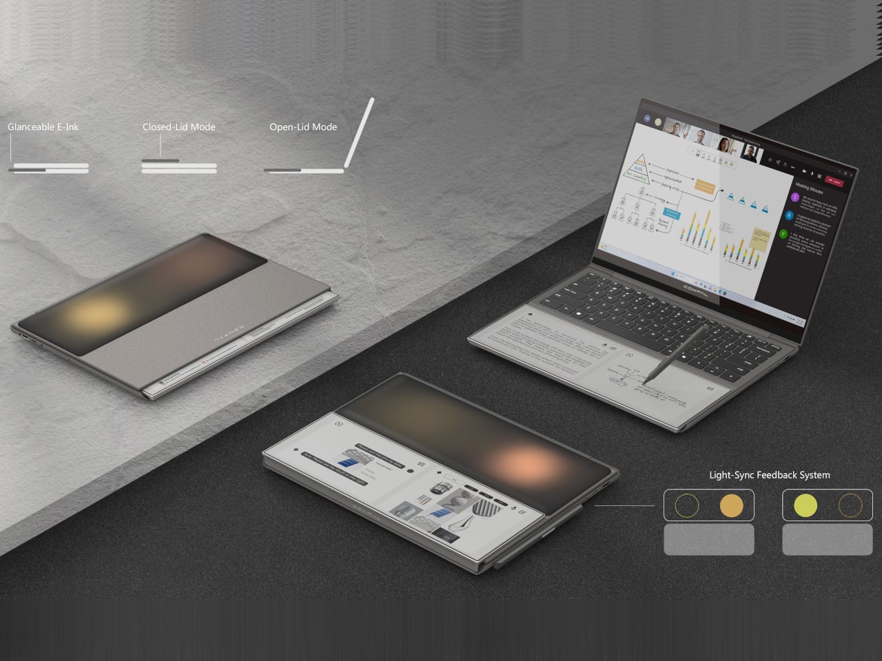 Most of the unused real estate on a laptop has never really been a problem worth solving. The palm rest just sits there, flat and inert, supporting your hands while the screen above does all the actual work. Compal, the Taiwanese ODM behind a string of forward-looking laptop concepts, decided that was a waste of space and came up with something genuinely different for its AI Book concept.