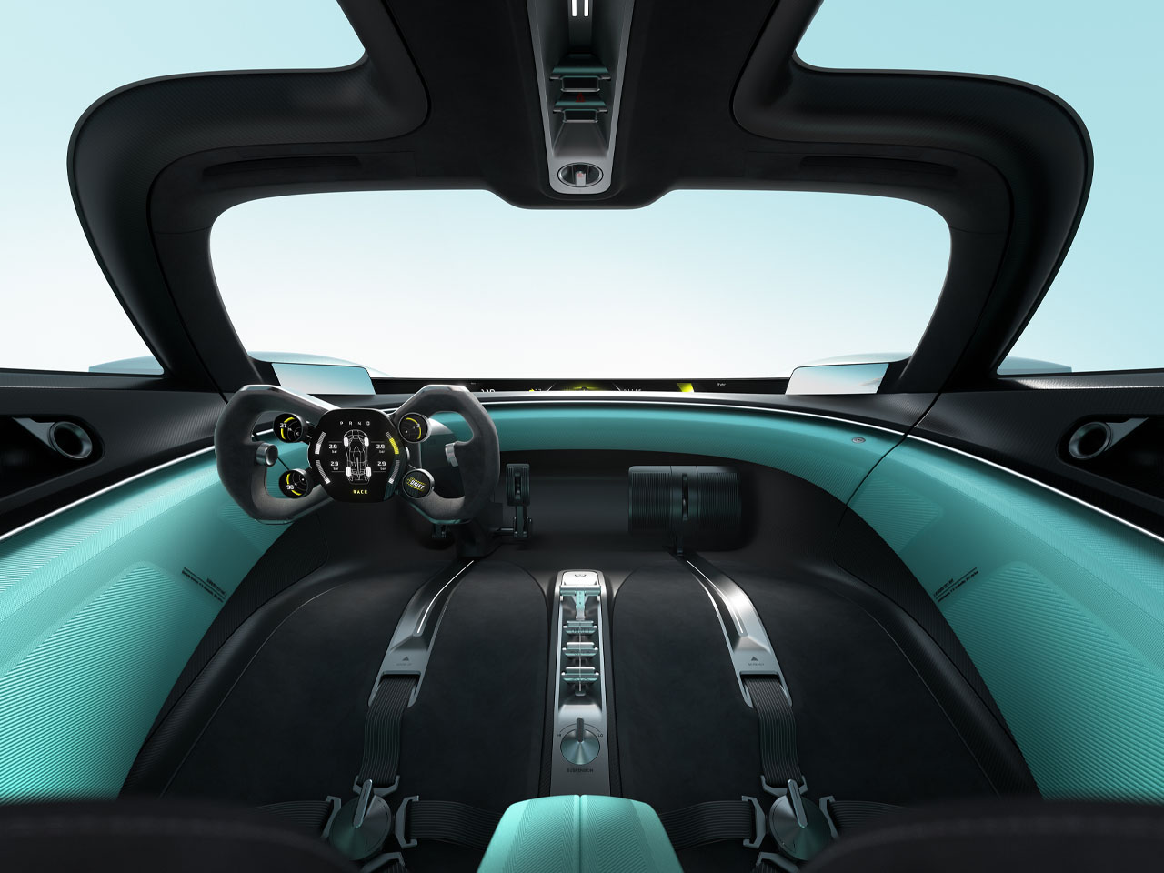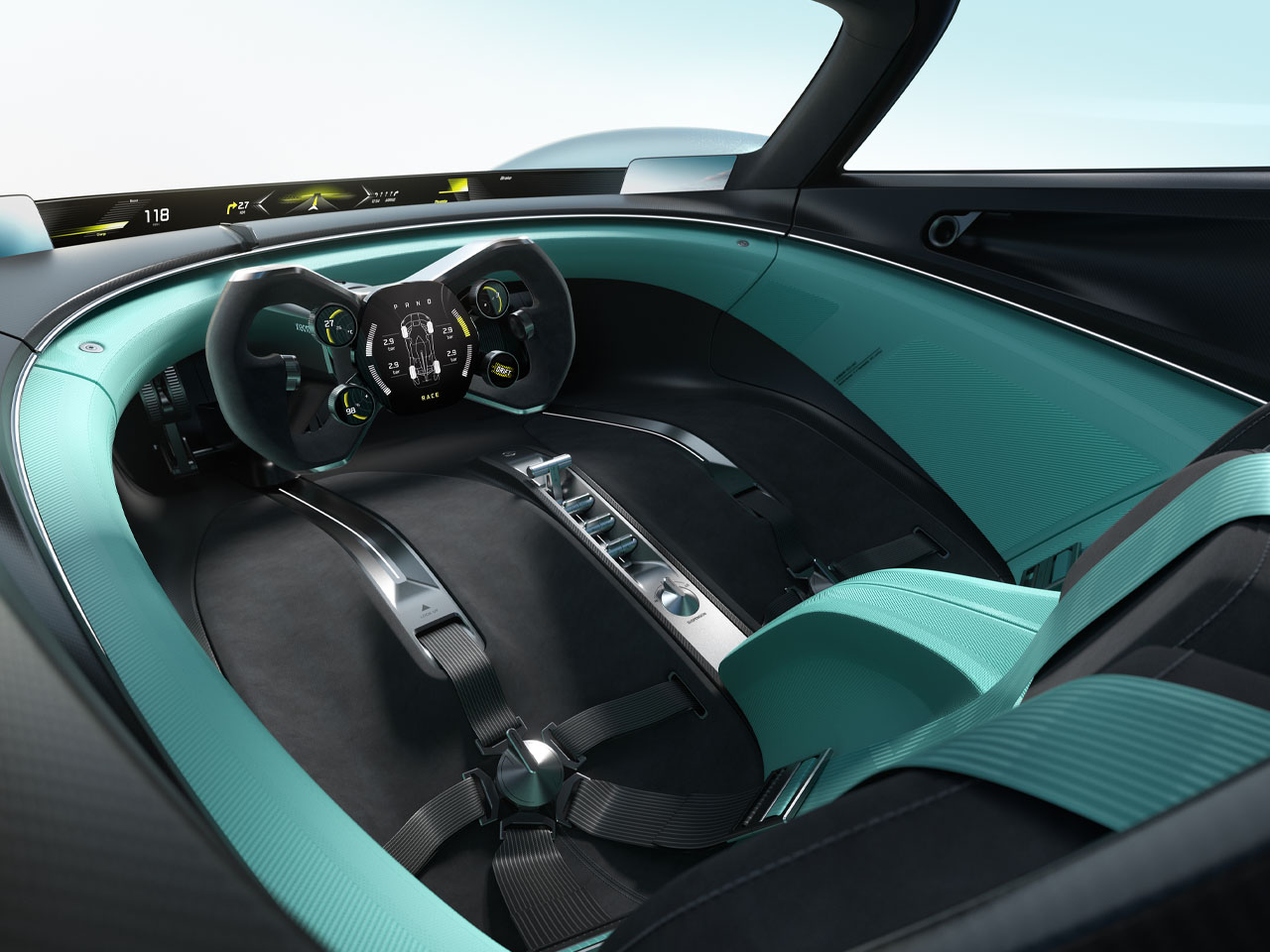 Given it is a concept, the technical aspects are wild – there’s a 900V Silicon Carbide (SiC) platform which ultimately delivers 1,900 horsepower. To handle that amount of power at high speeds, the car gets advanced components, including carbon-ceramic brakes and center-lock wheels. The two-door hypercar has a very linear profile with a very low ride height and only the cabin’s teardrop-shaped cockpit, with only the encapsulating bubble disrupting the aerodynamic performance. The shark-fin roofline architecture balances out things, though.