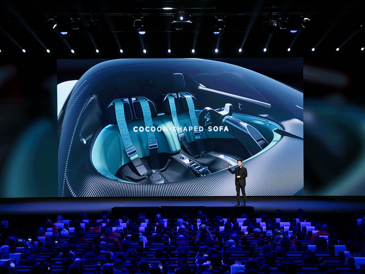 On the inside, Vision GT is a nest of tech-laden comfort and luxury. It has a cocooned Sofa Racer cabin, which holistically blends the dashboard, seats, and the scissor doors into one. The butterfly steering wheel is designed for maximum driver precision, and the overlaying display has a panoramic screen and the Xiaomi Pulse system that utilizes light and sound for interaction. The central console on the two-seater GT has physical button controls, a circular pointer knob, and a shifter mostly seen on an aircraft throttle.