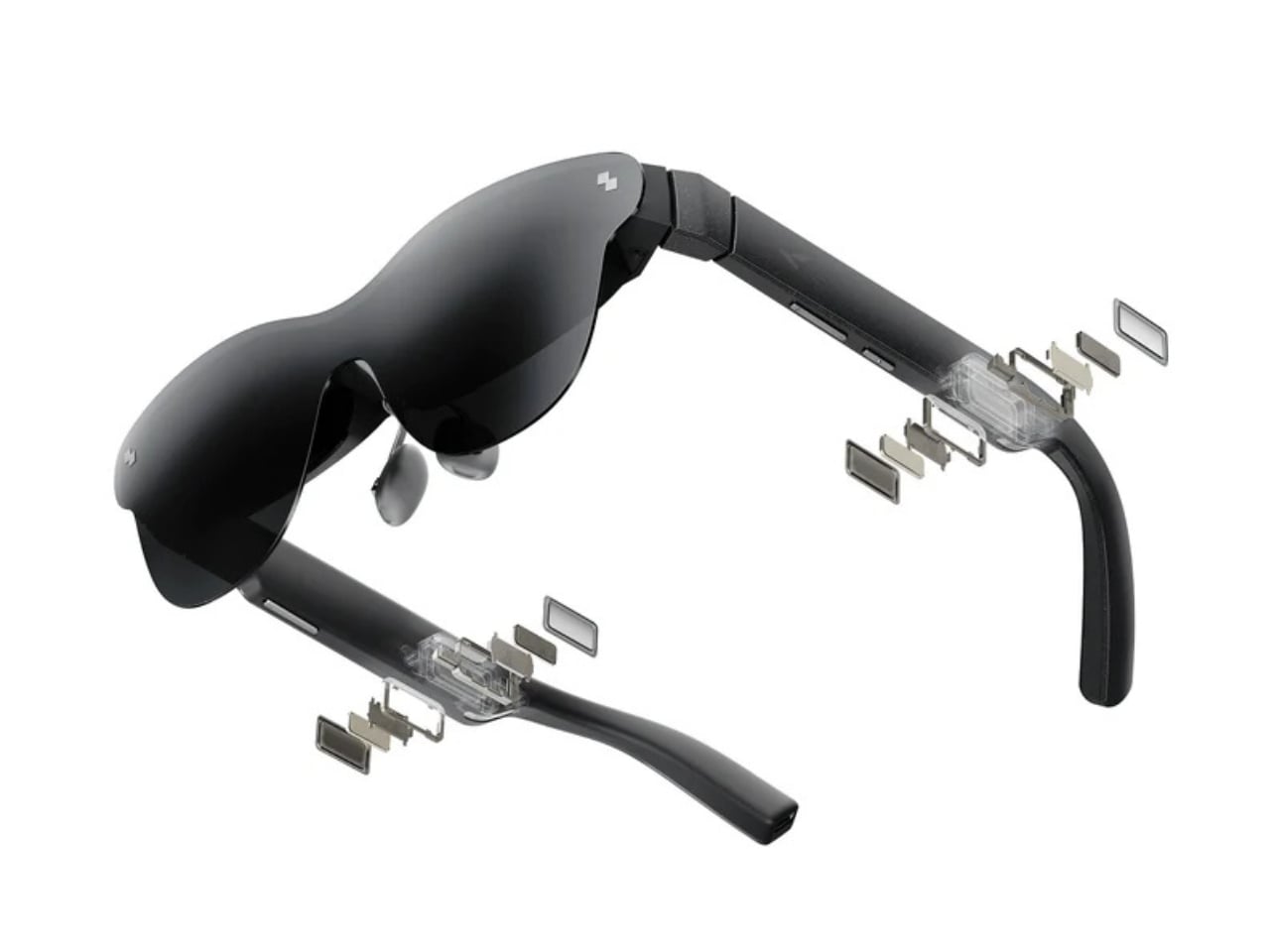 The glasses weigh 76 grams, which is no small achievement given everything packed inside. They include interchangeable nose pads, TÜV SÜD certification for low blue light and flicker-free performance, and a 3,840Hz PWM hybrid dimming system for eye protection. It is the kind of spec sheet that feels increasingly grown-up.