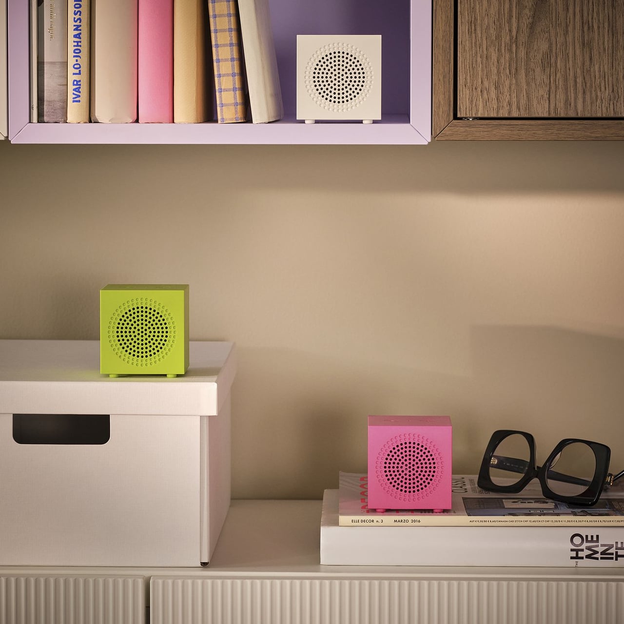 The KALLSUP is a cube, more or less. At 2.75 x 2.75 x 2.88 inches and built from ABS plastic, it has the proportions of a large sugar cube and a silhouette that wouldn’t look out of place on a shelf next to a small succulent. Designer Ola Wihlborg, who wanted the speaker to be “as small and simple as possible,” made something that reads less like audio equipment and more like an object that happens to produce sound when you connect your phone to it.