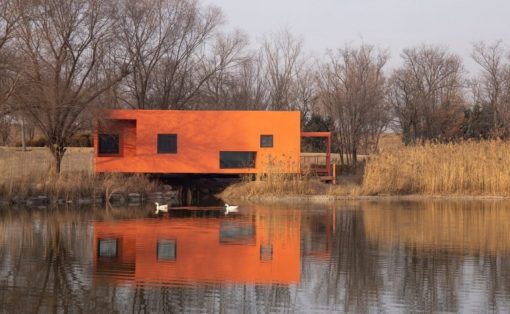 The material palette reflects practical decisions. Construction materials are left exposed, which reduces finishing work, minimizes waste, and keeps the building process straightforward. Sustainability systems are integrated quietly: solar panels provide electricity, and water is treated through a sequence of filters and natural processes before returning to the ground.