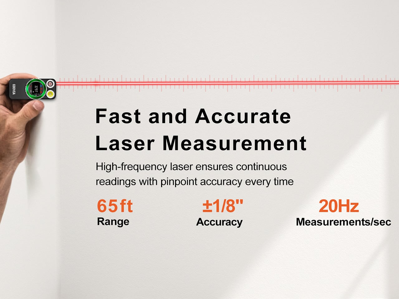 The laser distance measurement is where the TorchEye X1 separates itself from your average EDC flashlight. It fires a red beam that measures distances up to 20 meters with ±1/8 inch accuracy at 20 readings per second. That’s 20 measurements in a single second. For context, a standard tape measure requires two hands, an extra person ideally, and at least one moment of mild frustration. The TorchEye? You point, you press, and the number appears on the display before you’ve had time to question your life choices. Whether you’re figuring out if that new sectional sofa will actually fit in your living room, hanging a gallery wall without eyeballing it for the fifth time, or sizing up a workspace, this is the kind of tool that quietly earns its place in your pocket. It works best indoors on lighter surfaces, a white wall reads brilliantly, while darker or highly textured surfaces outdoors will give it a harder time, so keep expectations calibrated accordingly. There’s also a front and rear reference point mode, useful depending on whether you want to measure from the tip of the device or the back.