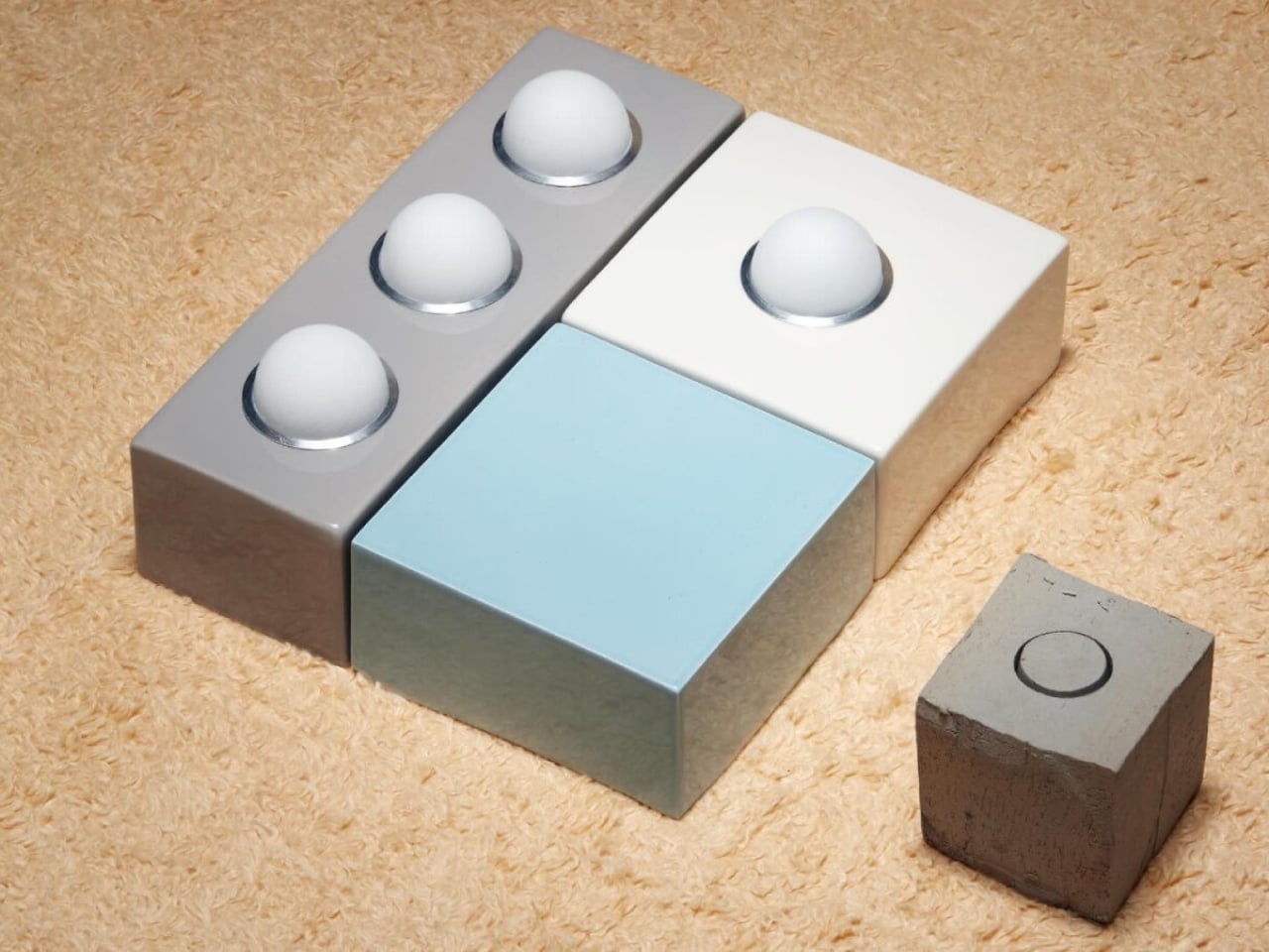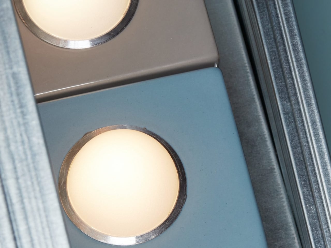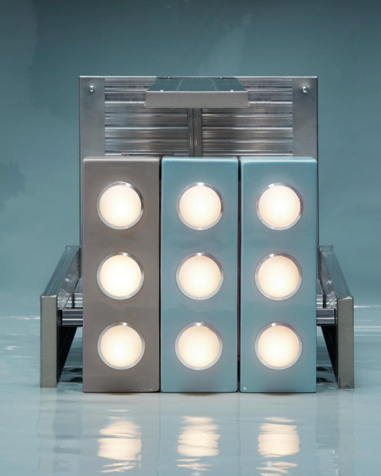 Glowtile works around a deceptively simple concept: glazed ceramic tiles, each fitted with an egg-shaped handblown glass diffuser set inside a ring of anodized aluminum. Two tile formats make up the system: a square 15×15 centimeter module and a rectangular 30×10 centimeter one. You can arrange them in grids, stagger them, mix both formats together, install them on walls, ceilings, or even set them on the floor to shoot light upward. It’s the same compositional freedom you’d have with any standard tiling job, except your tiles glow.