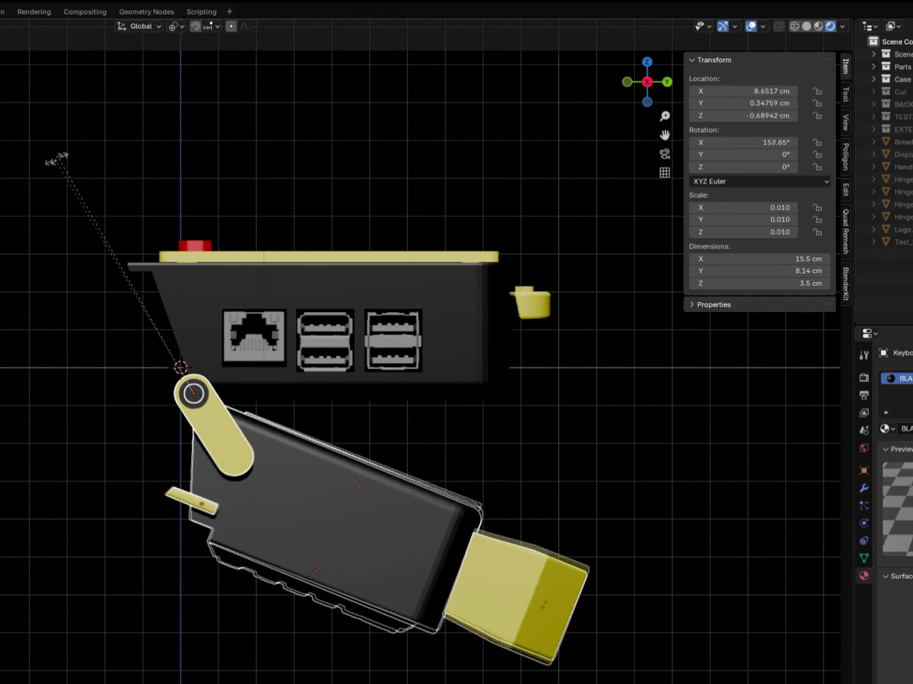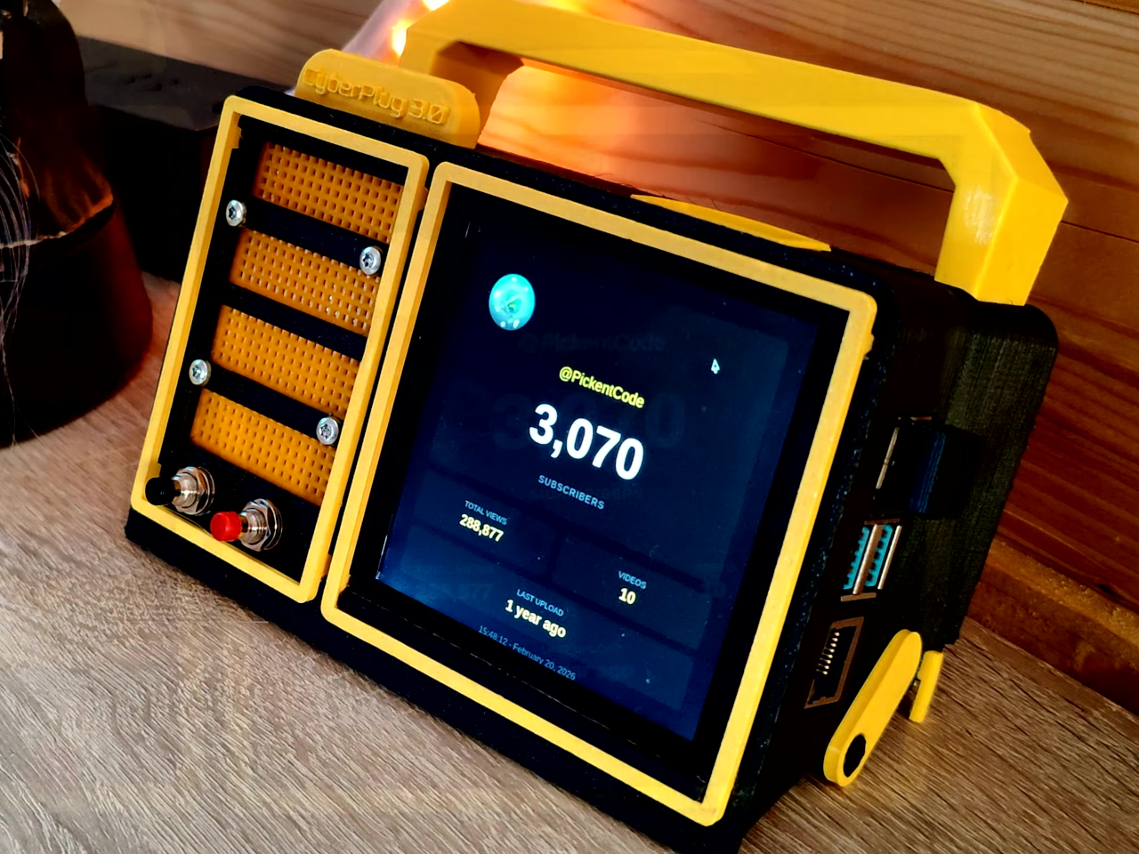 The CyberPlug 3.0 is the third iteration of a personal cyberdeck project, the earlier two having usability problems that sent PickentCode back to Blender to redesign. The final build packs a Raspberry Pi 4 Model B, a 4-inch IPS touchscreen, a Rii K06 mini keyboard with a built-in touchpad, and a 5,000 mAh USB-C power bank into a 3D-printed hinged body that folds flat for handheld use or props open at a desk-friendly angle.