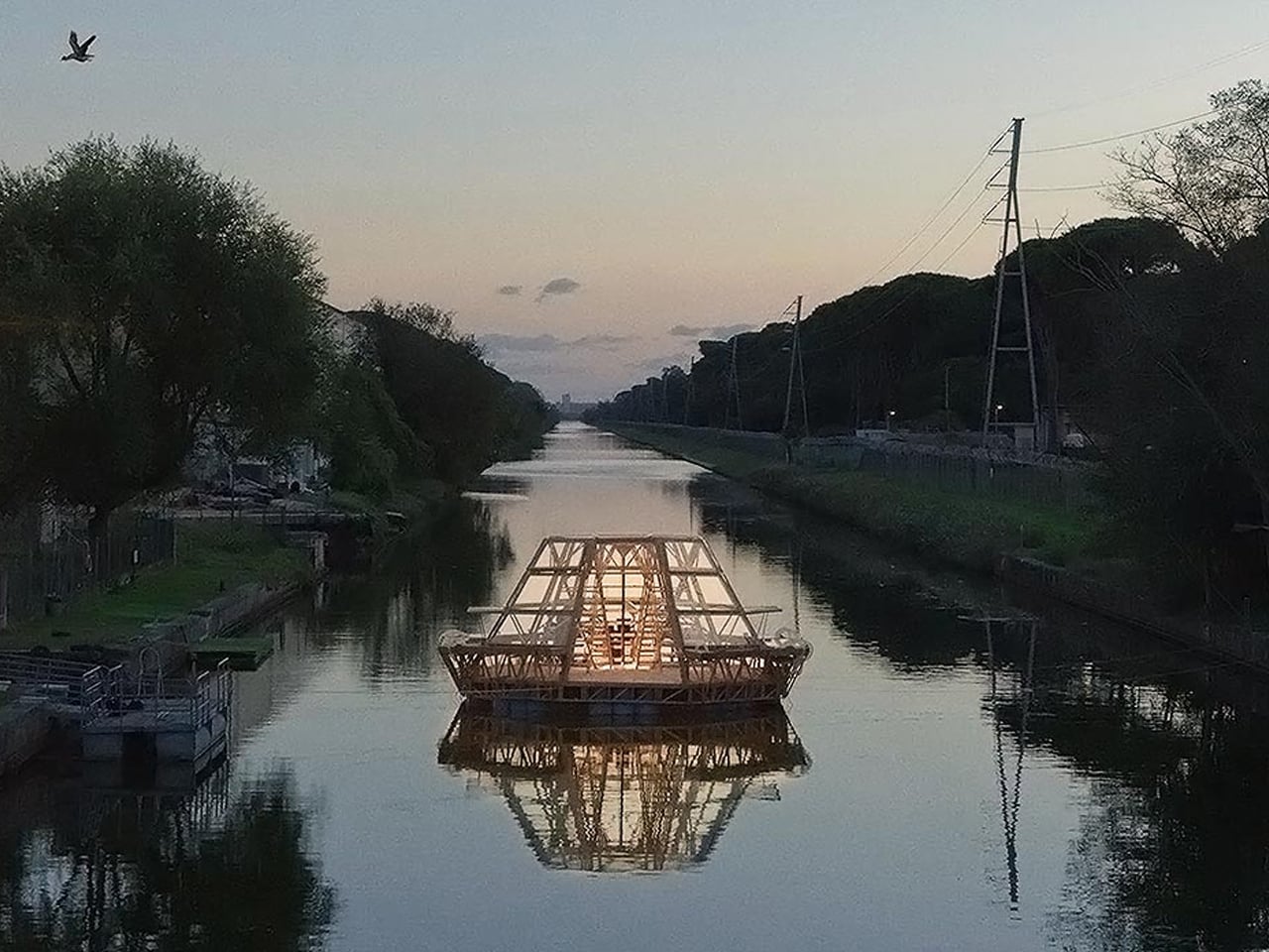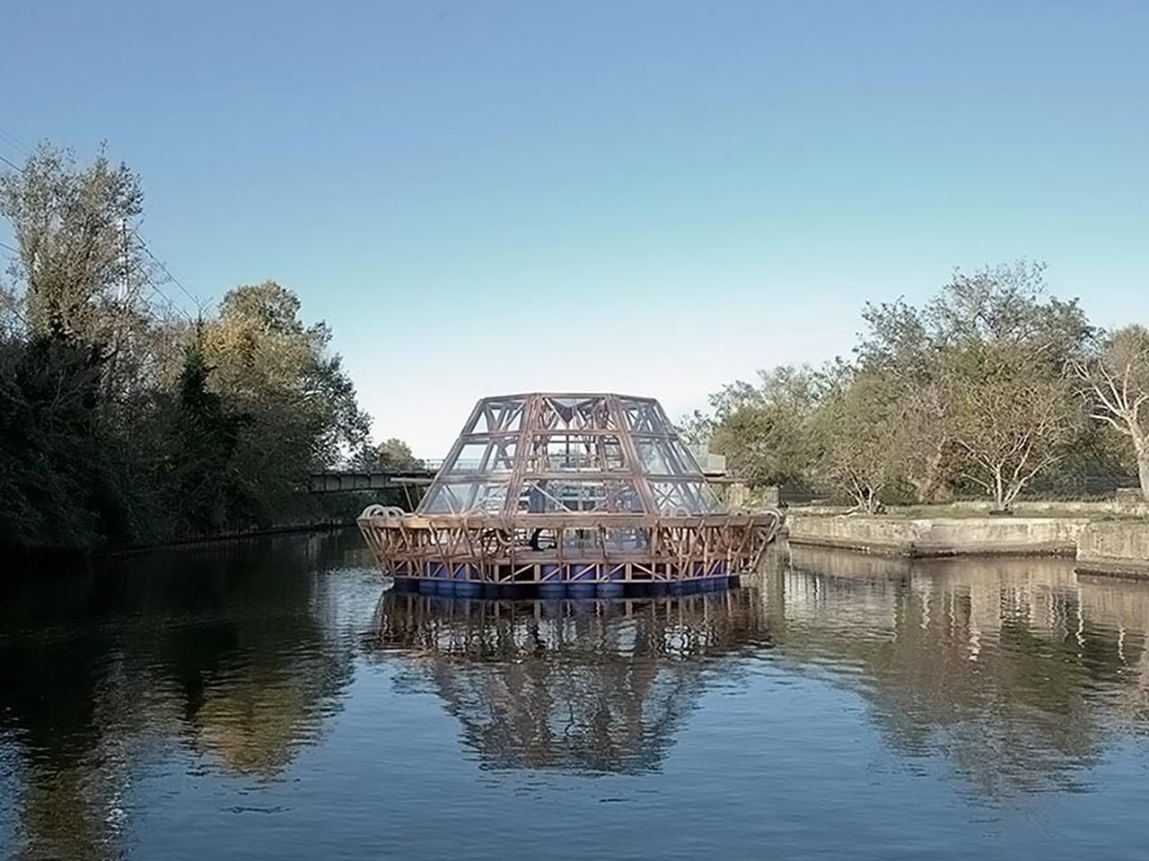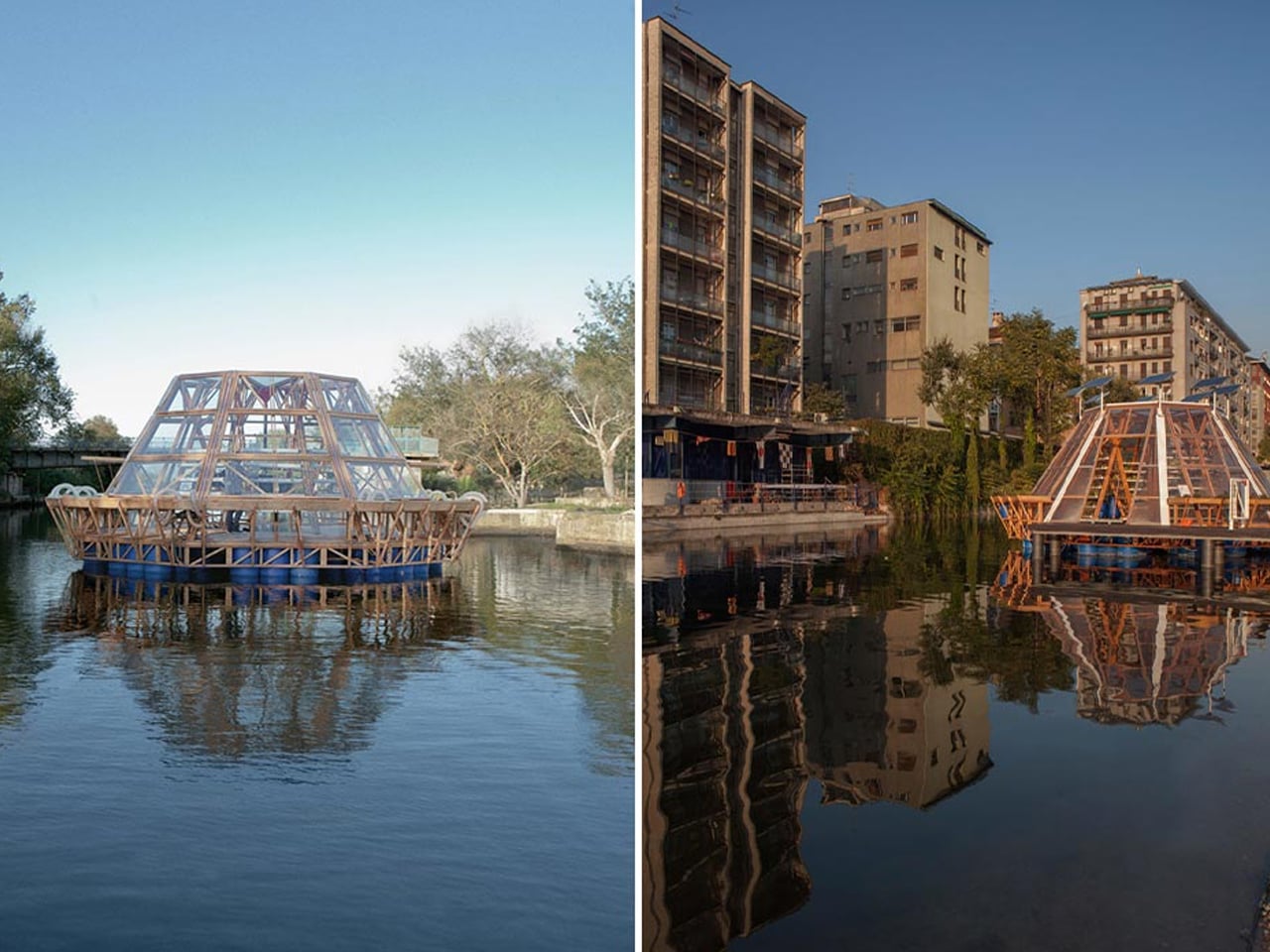Created by Studiomobile and Pnat, the Jellyfish Barge harnesses solar energy to desalinate water, producing enough clean water to sustain its crops. Built on a wooden platform supported by recycled plastic drums, it uses efficient hydroponic methods to reduce water usage by 70% compared to traditional systems. Its modular structure allows the design to be scaled, replicated, or adapted, even serving as floating markets or community farms. This sustainable, affordable greenhouse offers a promising model for future urban food resilience.