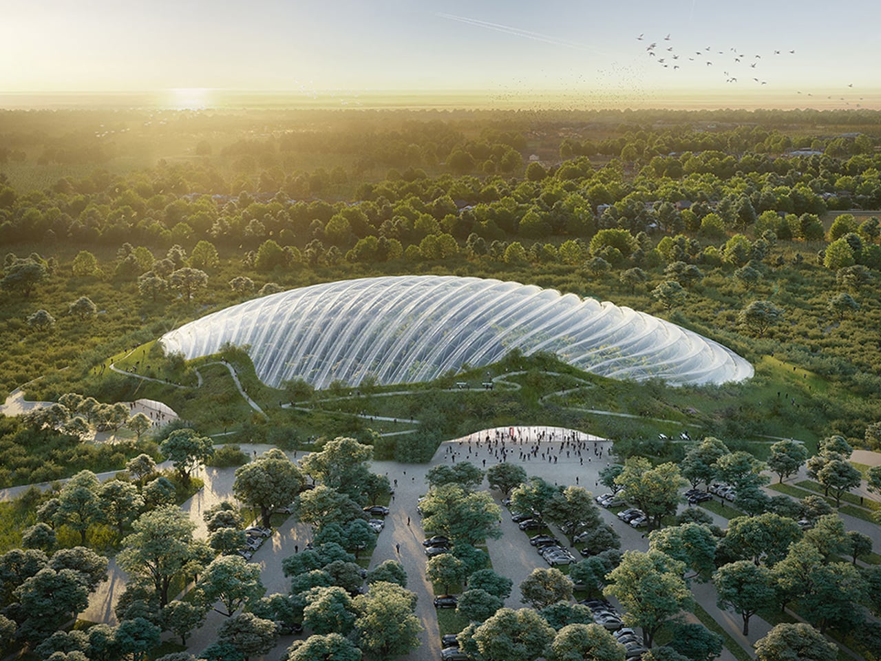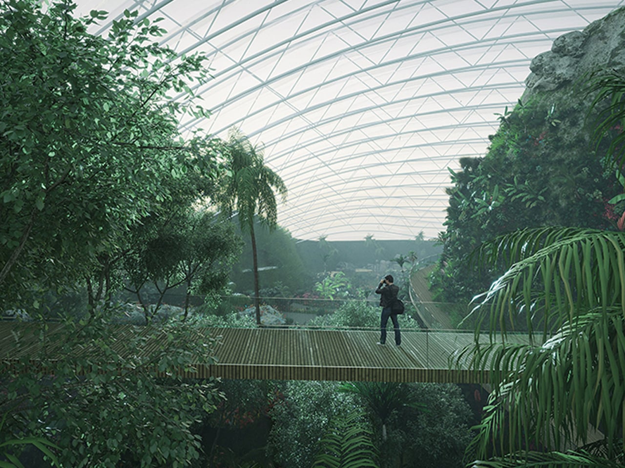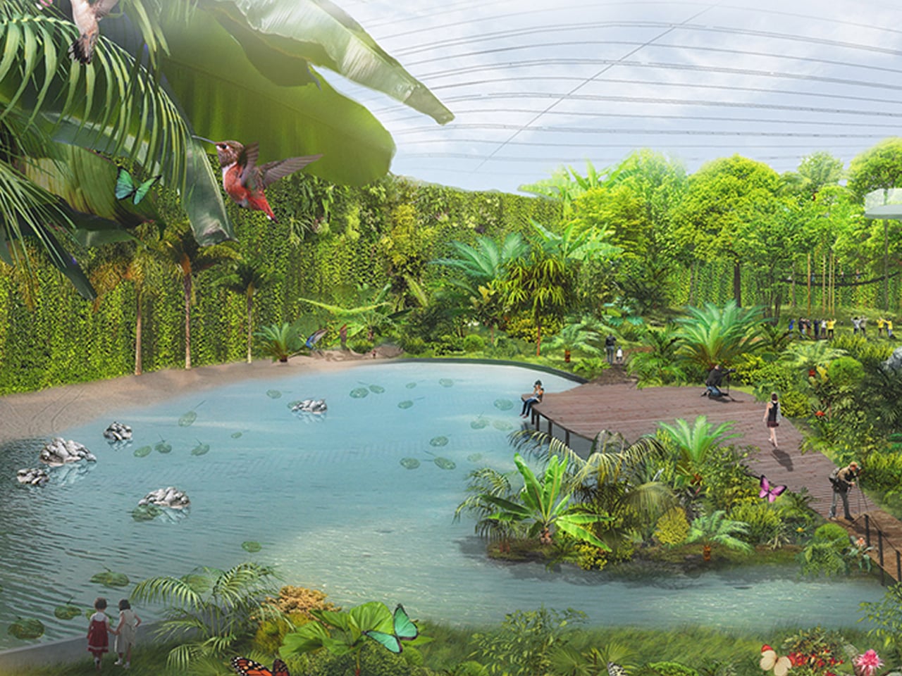 Designed by Coldefy & Associates in collaboration with an energy partner, Tropicalia is set to open in Northern France. This vast greenhouse maintains a stable tropical climate and functions without internal support columns, allowing biodiversity to thrive freely. Its innovative design captures and reuses the heat it generates, powering nearby buildings and addressing inefficiencies typical of traditional greenhouses. Inside, visitors can explore winding paths, waterfalls, and vibrant aquatic life.