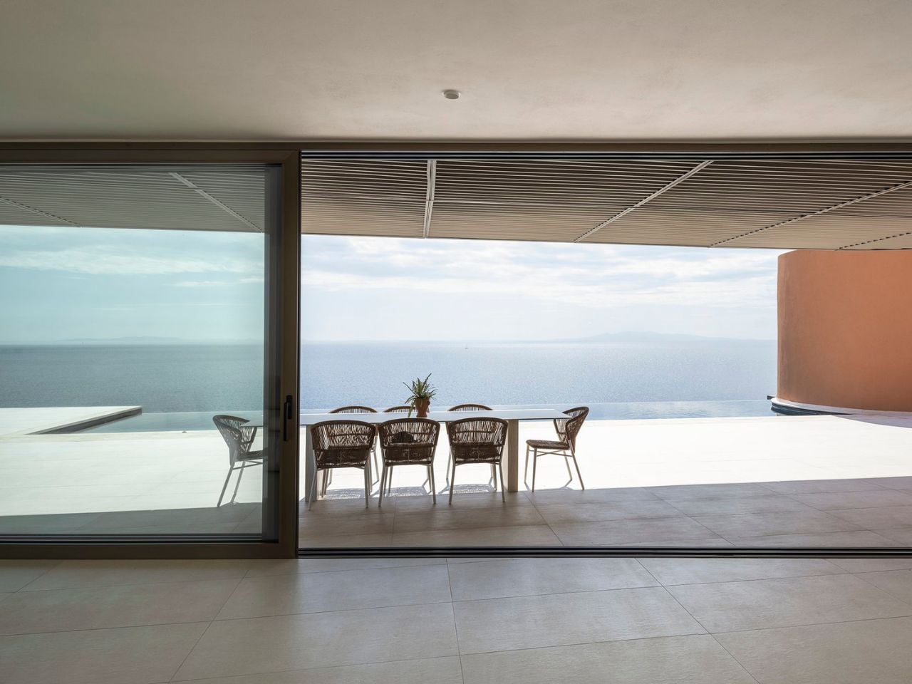 The site itself is relatively untouched, with rugged terrain and uninterrupted views across the sea. For the architects, this meant approaching the project with sensitivity. The aim was not simply to build a luxury retreat, but to do so in a way that respected the existing character of the place. Rather than placing a large structure on top of the land, the design tucks much of the building into the hillside so that the architecture feels like part of the terrain.