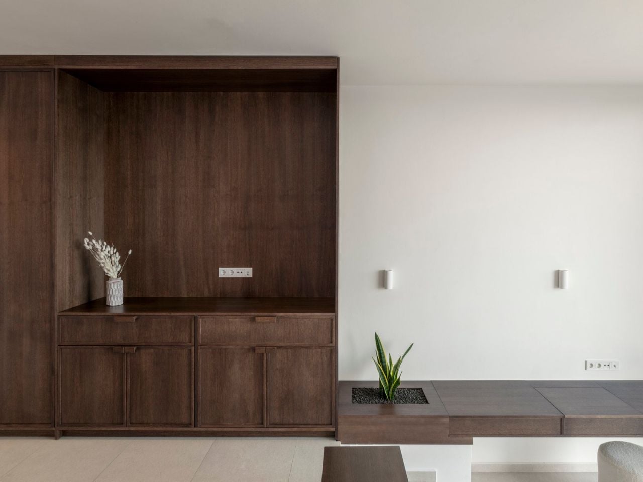In many ways, Olen feels less like a building placed on the landscape and more like an extension of it. The architecture follows the natural slope, opening itself gradually to the sea while remaining quietly anchored to the cliff. Guests move through terraces, shaded paths, and hidden rooms carved into the hillside, constantly aware of the surrounding horizon. The experience becomes less about staying in a hotel and more about inhabiting the landscape itself.