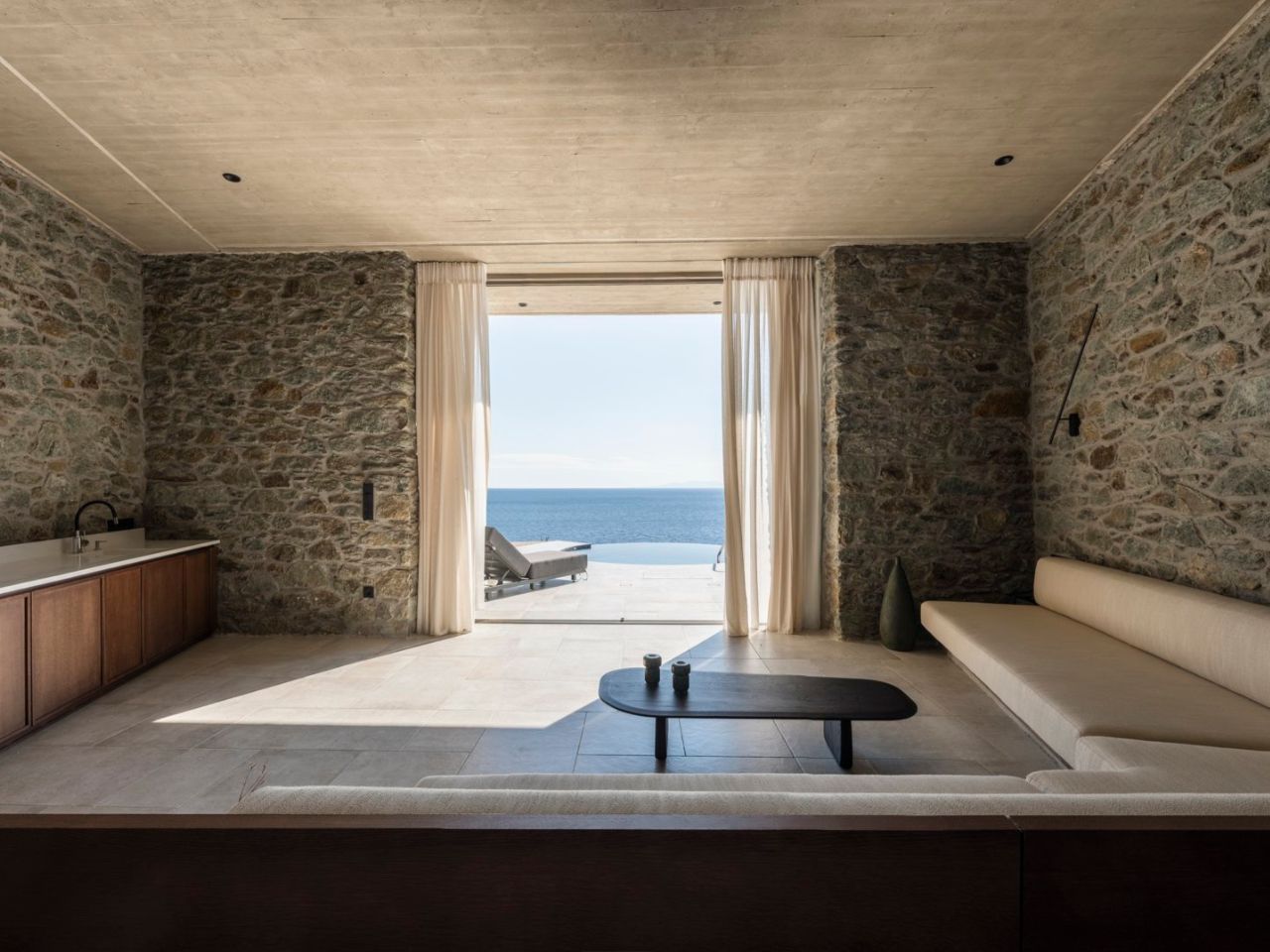 On a quiet stretch of coastline on the Greek island of Syros, a new resort seems to almost disappear into the landscape. Designed by the Athens-based firm Ateno Architecture Studio, Olen is a small seven-suite hotel that has been carefully carved into the rocky cliffs overlooking the Aegean Sea. Instead of standing out as a bold architectural object, the project quietly blends into its surroundings, allowing the landscape to remain the star of the show.