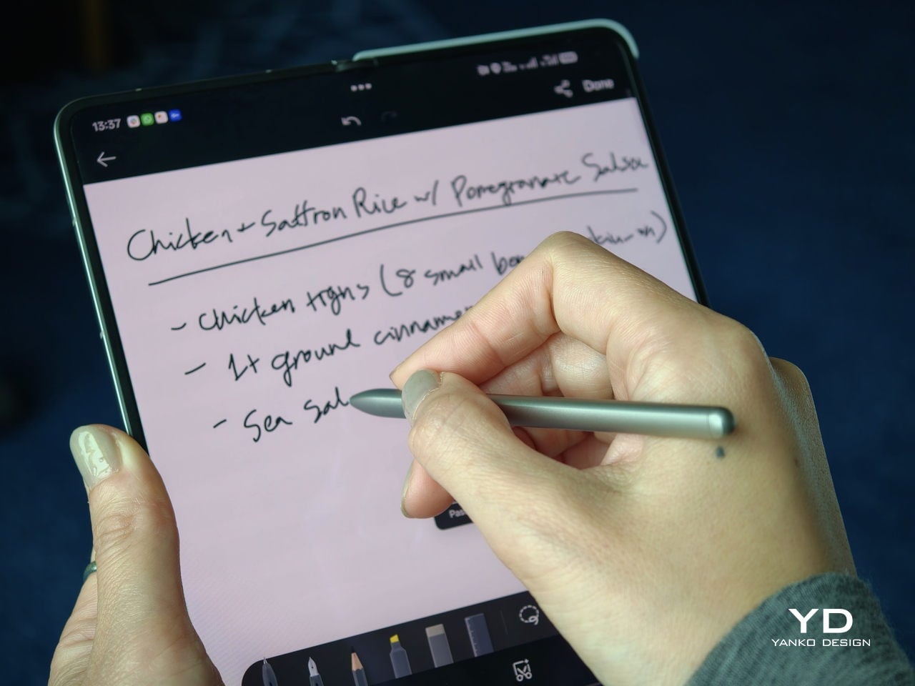 The software support around the pen is also fairly thoughtful. Quick Note lets you start writing quickly, a double press switches between writing and erasing, and global annotation makes it possible to mark up content across the interface and export it as an image or PDF afterward. There are also a few more specialized tools, including handwriting optimization, a handwriting calculator, and a Laser Pointer mode for presentations. Not all of these will be essential, but together they make the pen feel more genuinely useful than most stylus add-ons tend to.