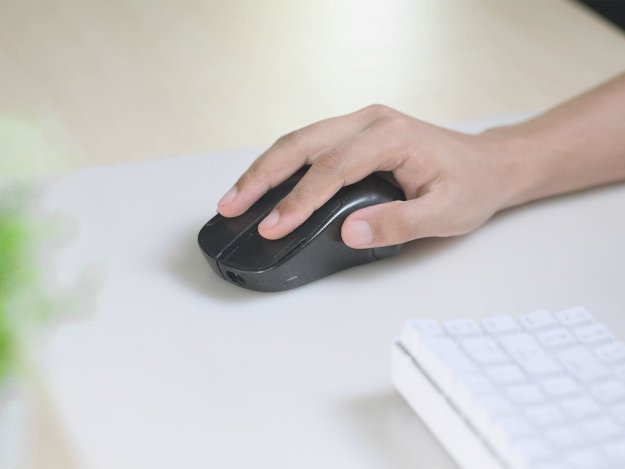 As a mouse, the Phase is competitive on paper. A 16,000 DPI optical sensor pairs with a 1,000 Hz polling rate when connected via the included 2.4 GHz USB dongle. Bluetooth LE is available for convenience and multi-device pairing across up to three devices, though the polling rate drops to 125 Hz in that mode, a gap that matters in fast-paced PC games.