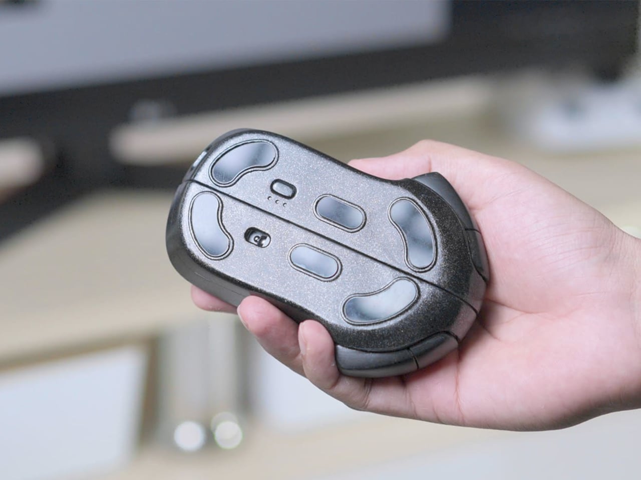 That missing scroll wheel is not an oversight. Fitting a traditional wheel in the center of the body would have made the split mechanism impossible, so Pixelpaw replaced it with a capacitive touch strip along the top of the left button. Flicking a finger across it scrolls through documents and web pages, with a glide feature that lets the momentum coast rather than stop abruptly. It’s a trade-off that works around a real geometric constraint.