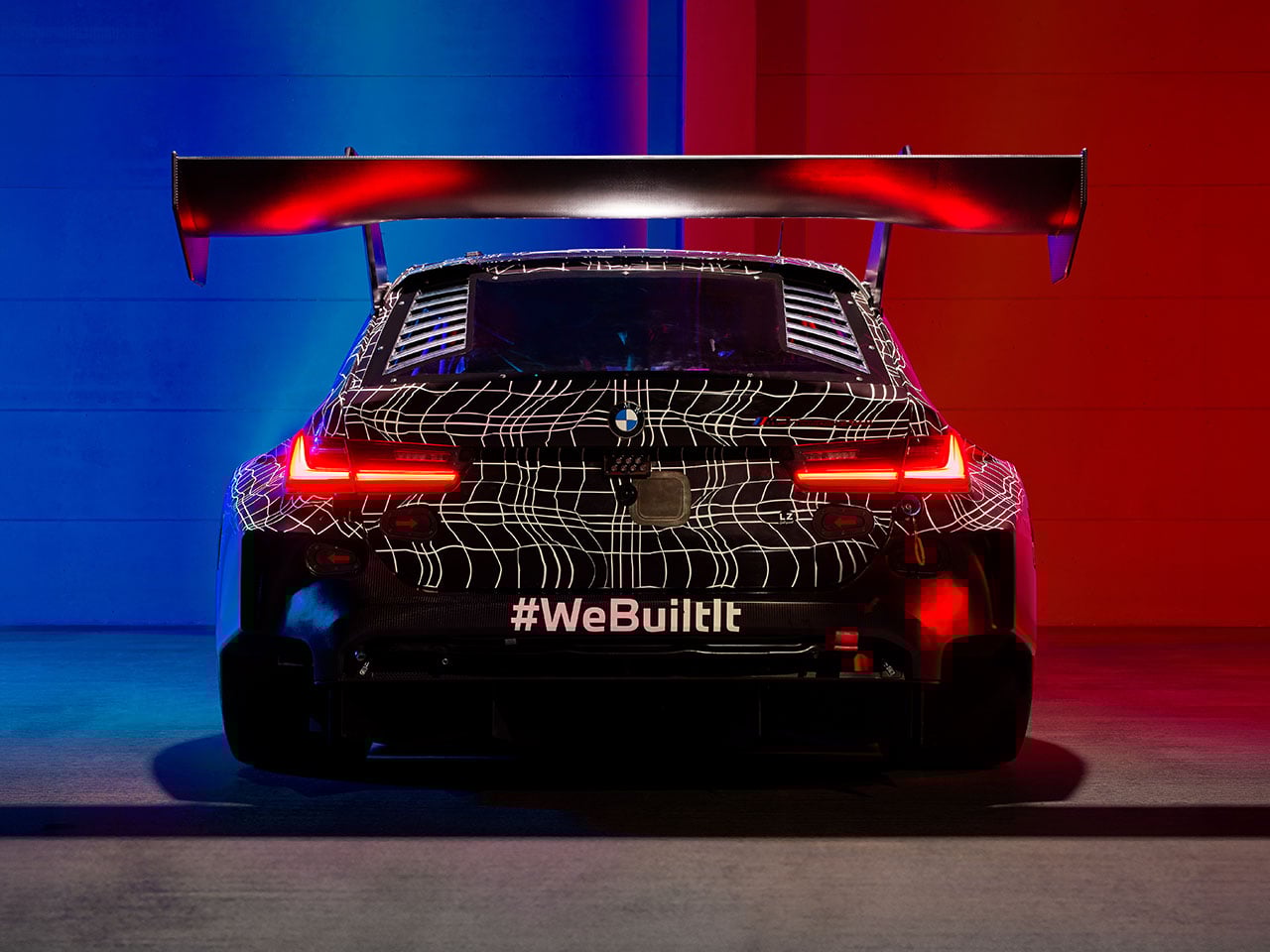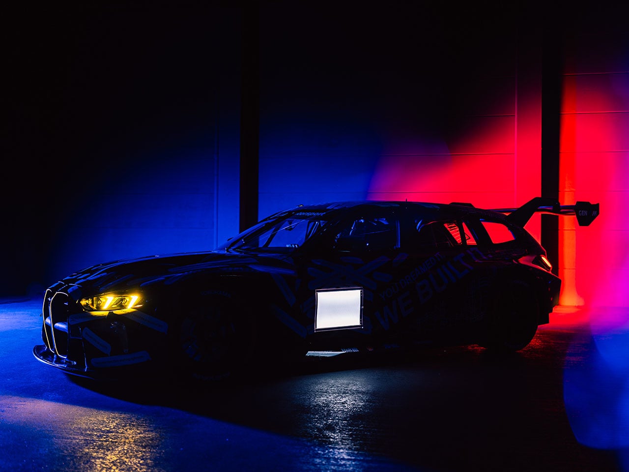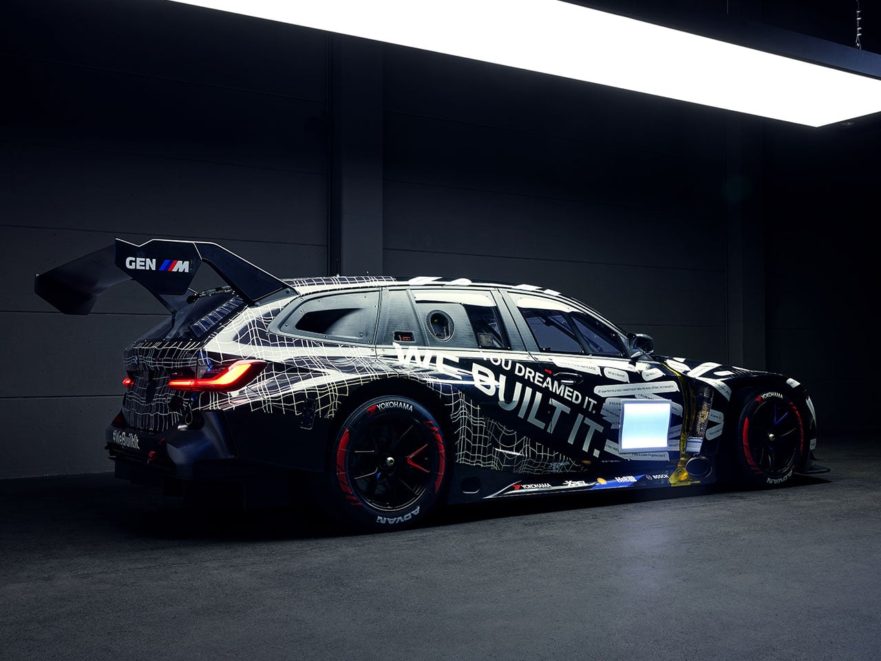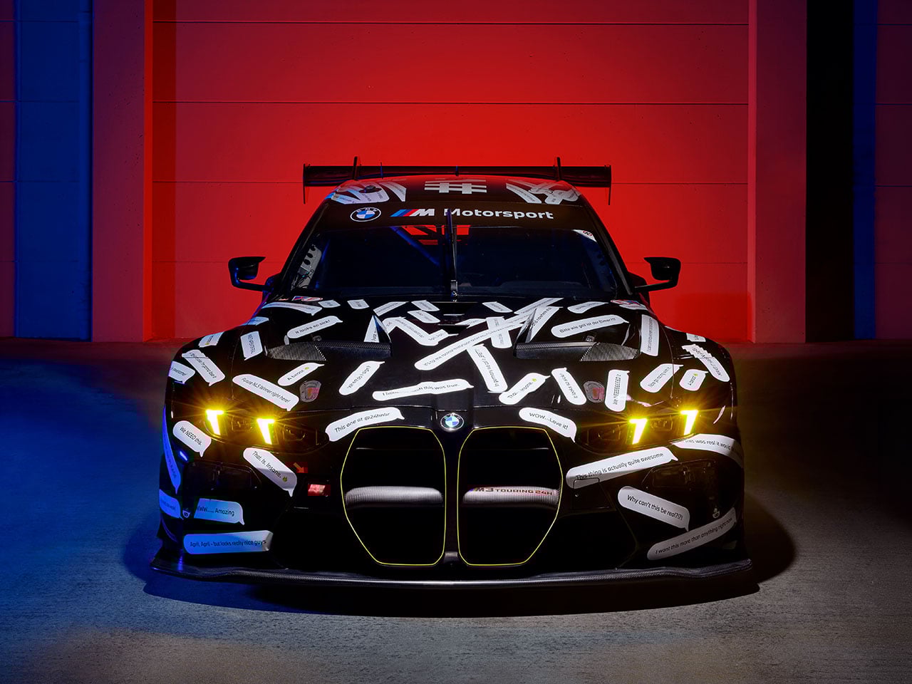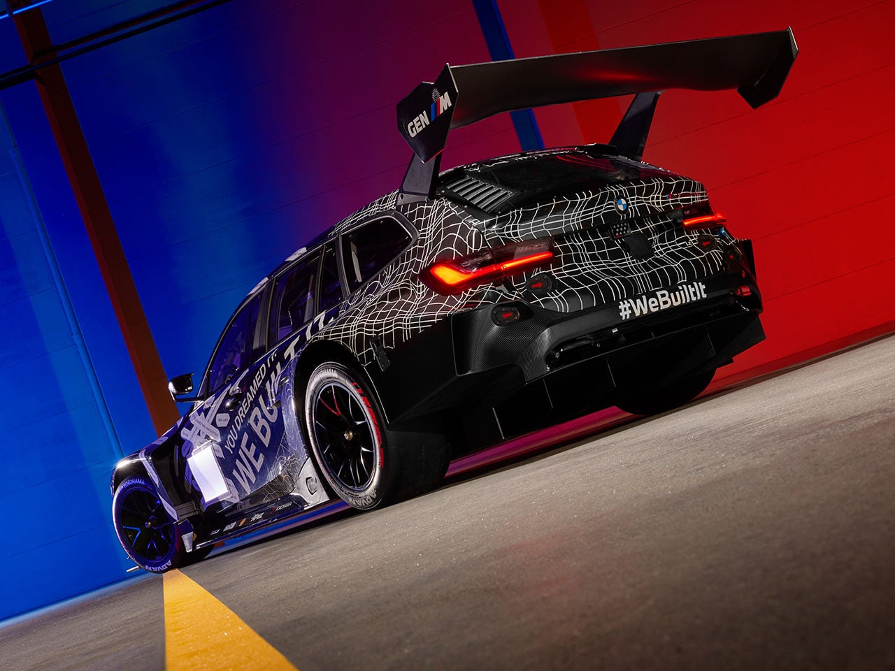 Visually, the M3 Touring 24H transforms a practical family wagon into a striking track weapon. The bodywork incorporates wide fenders, a deep front splitter, aerodynamic side panels, and a large rear wing mounted above the tailgate. A racing diffuser and enlarged air intakes help optimize airflow and cooling during long stints on track, while the overall stance mirrors the aggressive proportions of BMW’s GT race cars. The familiar Touring silhouette remains intact, giving the car a distinctive appearance that blends practicality with pure racing performance.
