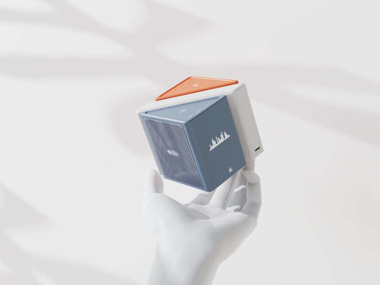 Visually, the design is confident without being loud. The modules are geometric and compact: a rectangular flat piece, a squared speaker body, and a triangular wedge that caps the top when assembled. The whole thing sits in your palm like a premium toy, which is very much the point. The team describes the tactile experience of rearranging the modules as analogous to playing with building blocks, and that framing is spot on. Listening becomes a physical act rather than a passive one. You’re not adjusting a slider on an app; you’re literally picking up a piece of the song and putting it somewhere else.