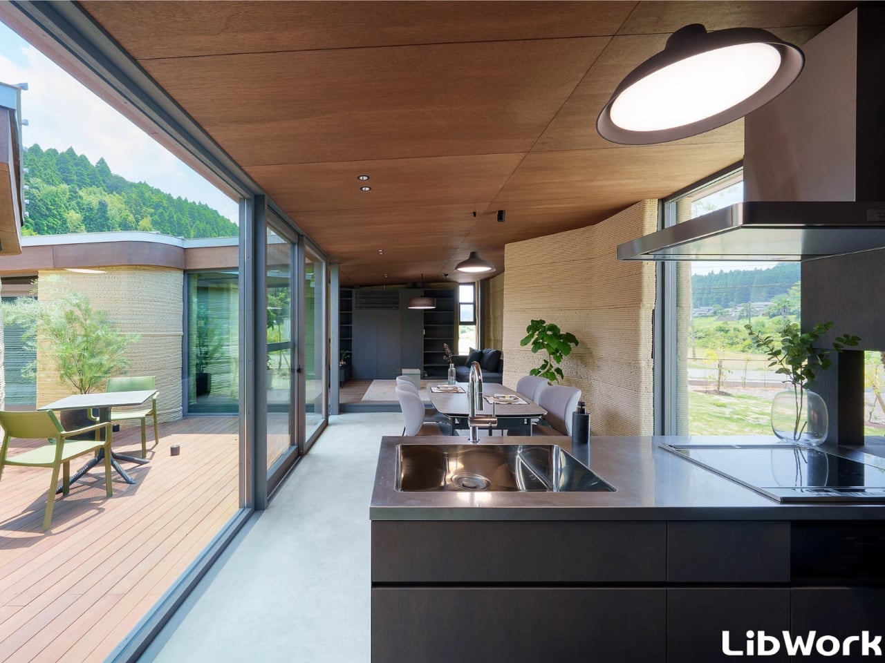 Japanese architecture studio Lib Work has introduced the Lib Earth House Model B, a 1,076-square-foot home made primarily from 3D-printed soil. Located in Yamaga, Kumamoto Prefecture, and developed with Arup and WASP, this project represents a significant departure from traditional concrete construction. The single-story structure features gently curved walls and a ribbed exterior texture, showcasing the potential of combining ancient materials with advanced printing technology. Constructed from a mix of soil, sand, slaked lime, and natural fibres, the home cuts typical construction emissions by more than half while promoting durability and thermal performance.