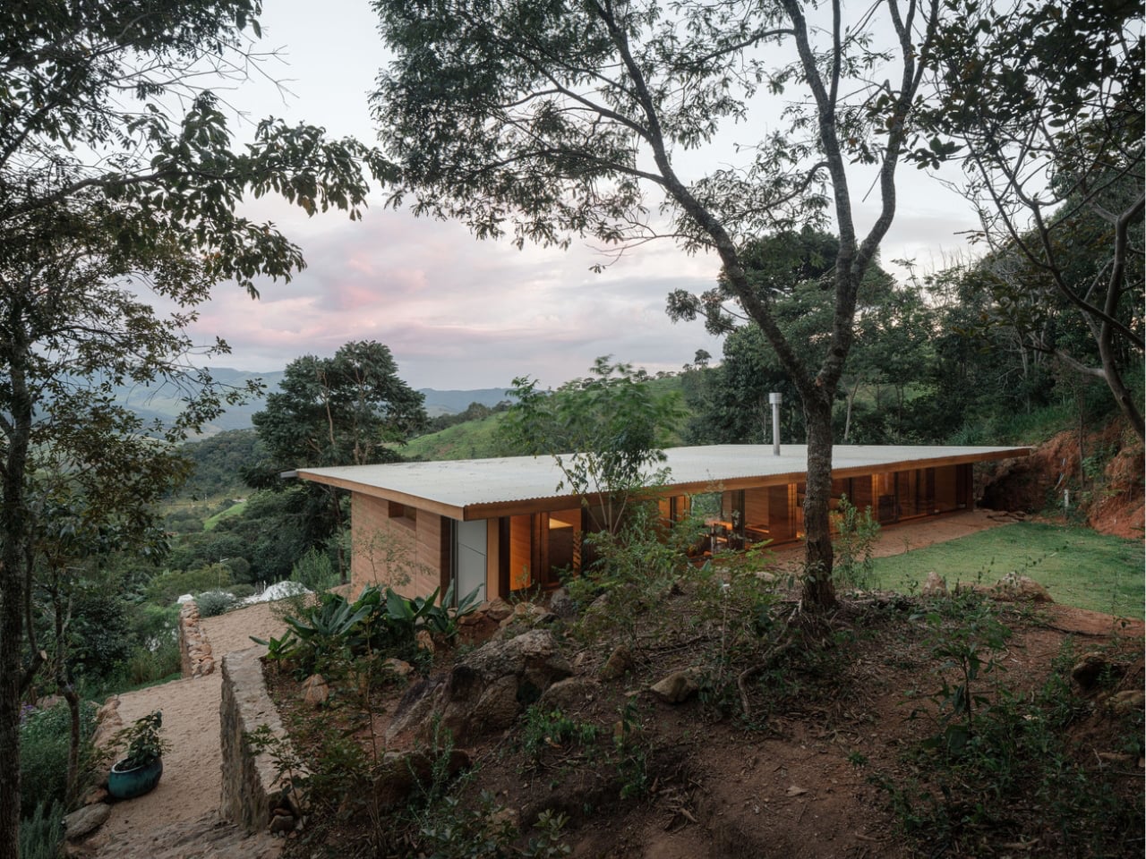 Arquipélago Arquitetos’ Piracaia Eco-Village in rural São Paulo exemplifies sustainable home design, using rammed earth construction to create affordable, eco-friendly residences. Located in the village of Piracaia, the development currently includes three homes ranging from a 538-square-foot studio to a 1,245-square-foot two-bedroom unit. Each home features rammed-earth walls formed from local soil, providing structural strength and natural insulation. A modular design allows the system to be easily replicated or scaled, offering flexibility and efficiency.
