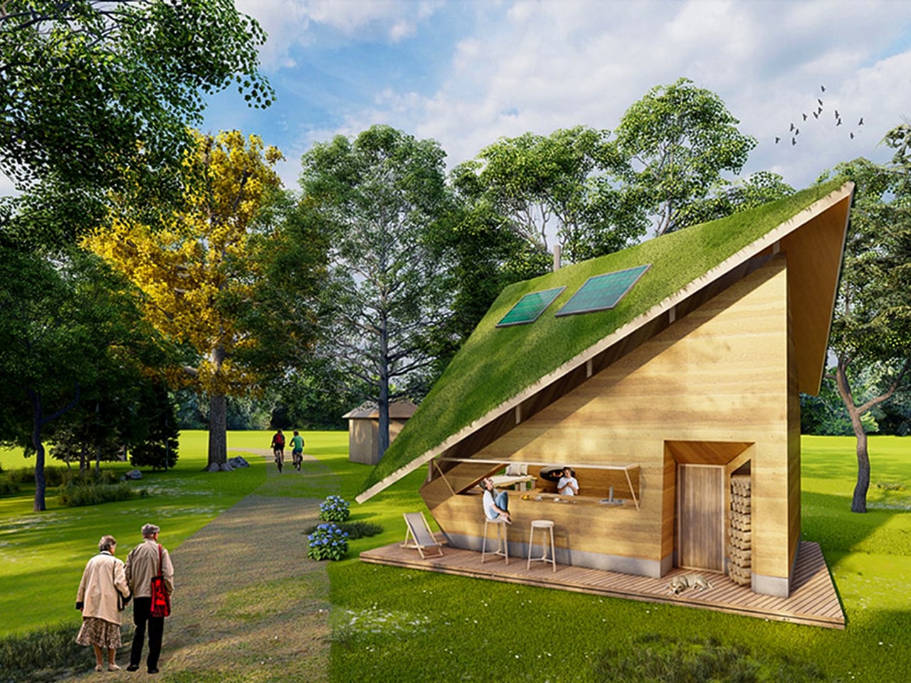 The Rammed Earth House in Slovenia reimagines the early 20th-century farmhouse by combining ancient building methods with modern solar technology. Designed by architects Merve Nur Başer, Aslı Erdem, and Fatma Zeyneb Önsiper, the tiny home uses rammed earth, a sustainable technique dating back thousands of years – along with a concrete foundation and timber framework. Inspired by Slovenian architect Oton Jugovec’s floating roof, the house also features an extended green roof to protect the structure from erosion caused by Dobrava’s varied climate of rain, snow, and humidity.