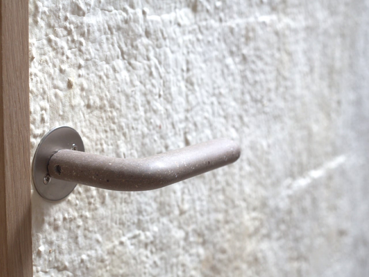 The first real-world application will be at Kaerhytten, a low-impact housing project in Ramloese, Denmark, designed by architect Jens Martin Suzuki-Højrup, scheduled for completion in 2026. The prototype also features a door handle by architect Bjarne Hammer for Danish brand Randi, the Moom handle cast from recycled seashells, adding a tactile detail that mirrors the door’s material ethos. Looking ahead, Rebound and Det Levende Hus are expanding into mycelium-based acoustic wall panels and ceilings. As Suzuki-Højrup put it, “It’s about how natural materials can transform our experience of space, visually, acoustically, even emotionally.”