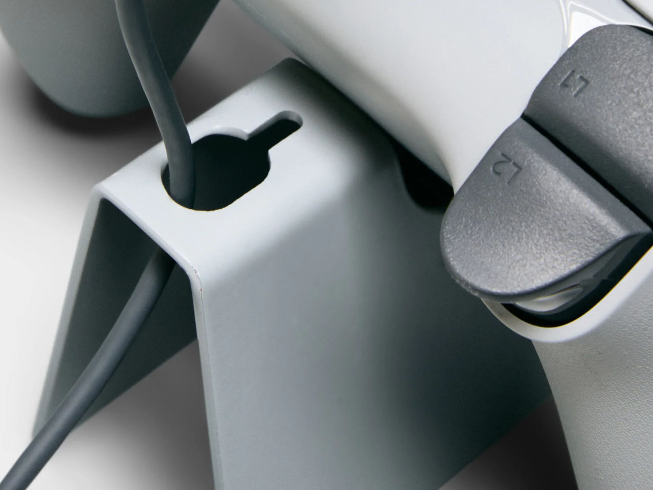 Functionality extends beyond simply holding a TV. The limited-edition package includes a matching Legacy Shelf and a controller stand, giving players a dedicated place to display a controller or store accessories. Additional cable management accessories, such as cable dots and cable ties, are also included to help keep wires organized and out of sight. The shelf adds a subtle display area that can hold game cases, collectibles, or other gaming gear without interrupting the stand’s minimal design language.