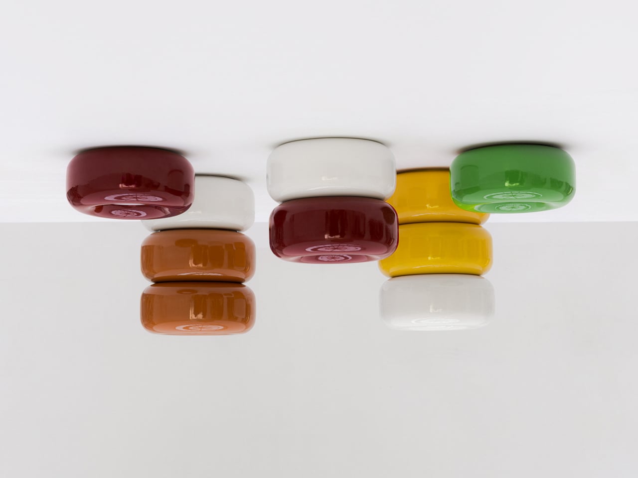 The craftsmanship behind the lighting is traditional and deliberate. Each piece starts as a slip-cast semi-porcelain form, drying for several days before being fired at 1,100°C inside a muffle furnace. A coat of glaze and paint follows, giving the finished modules their signature smooth, candy-like sheen. It’s a fairly labor-intensive process for what might look like a simple geometric shape, but that’s precisely what gives each piece its quiet depth.