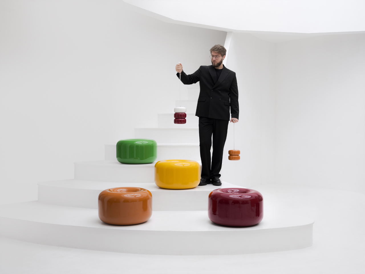 Tatarintsev’s inspiration came from a period of deep personal reflection. Amid what he describes as the noise of contemporary life, he looked inward and found his answer in childhood, specifically in the candy that practically every kid growing up in the 90s and early 2000s would recognize. That small, glossy, jewel-toned caramel sweet became both his muse and his design vocabulary, shaping everything from the forms to the color palette.
