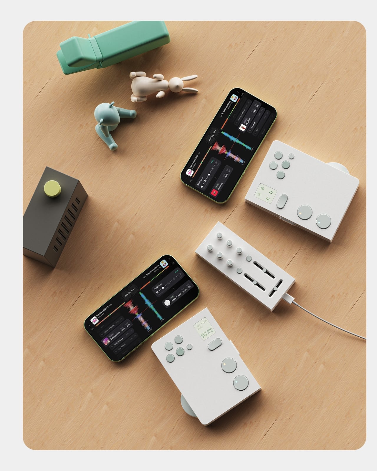 Design-wise, Twin is stunning in the way that restrained things often are. The palette is muted and deliberate, soft white surfaces with sage green accents on every button and control. It reads less like audio equipment and more like something you’d find at a thoughtful design boutique. That’s not a small thing. DJ gear has historically leaned toward the dark, chunky, and maximalist, which works for club installs but can feel genuinely intimidating on a bedroom shelf. Twin looks like it belongs in your living room, which I suspect is very much part of the point.